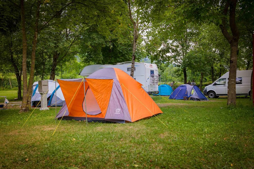Il campeggio è situato in posizione collinare e diviso a terrazzamenti, pratici sia per camper e caravan che per tende, le piazzole sono ben ombreggiate e con fondo erboso adatte a mezzi con dimensioni che non vanno oltre gli 8,5 metri. Per chi non fosse attrezzato oltre alle piazzole per tende, caravan e camper sono disponibili alcuni caravan con veranda in legno, ideali per famiglie che amano stare a contatto con la natura e provare l’esperienza della vita da campeggio. I dintorni offrono varie possibilità di escursioni e paesaggi mozzafiato per gli appassionati delle passeggiate, della mountain bike e della e-bike.