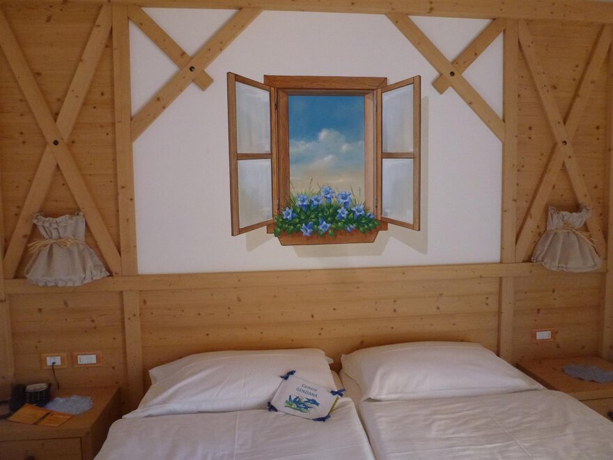 Ogni camera dispone di Frigo Bar, TV satellitare, Internet WiFi e una piccola terrazza che dà sul giardino. In tutte le stanze è inoltre presente un divano letto. Sei camere con una vista magnifica, ognuna dedicata ad un fiore delle nostre montagne (STELLA ALPINA- GENZIANA...). Svegliarsi col sorriso non è mai stato così semplice!