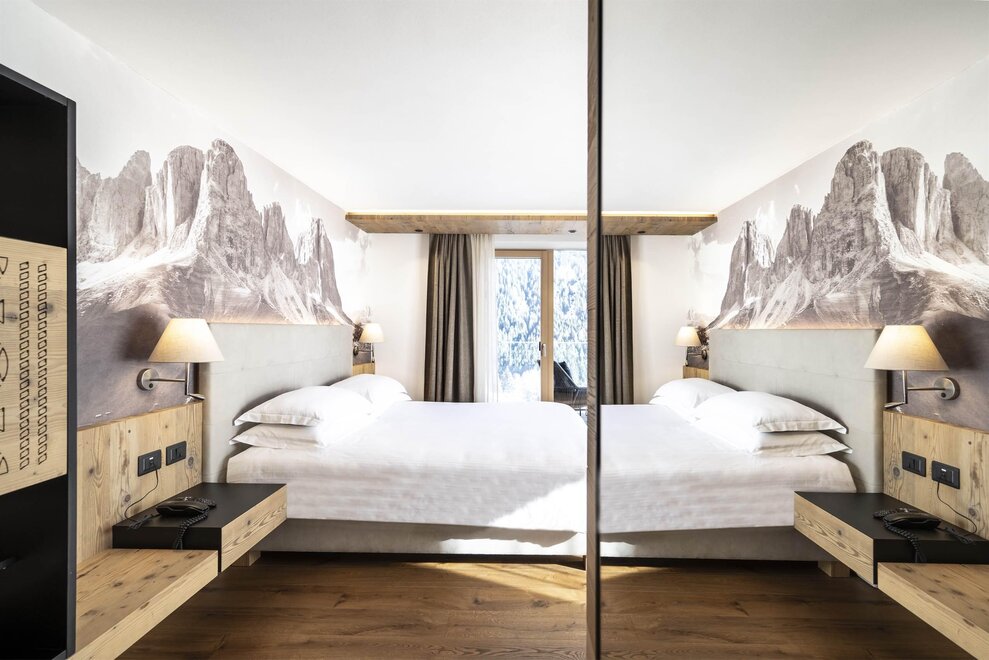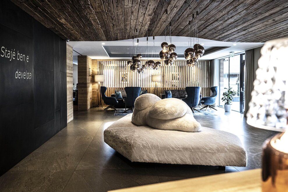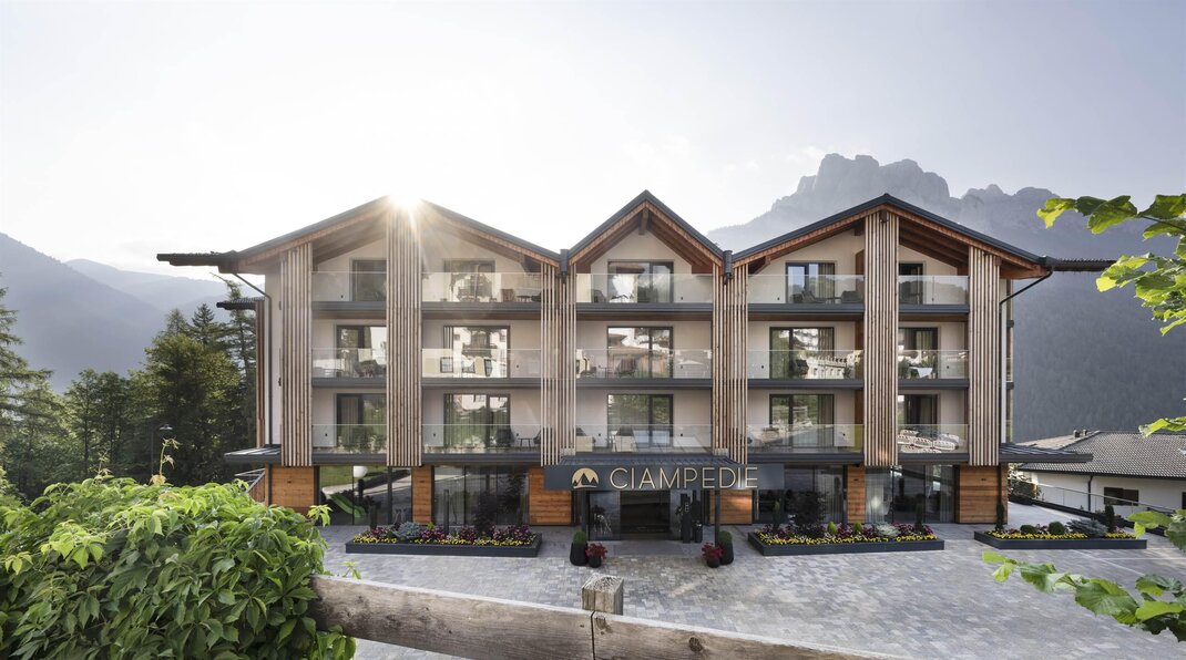 L’Hotel Ciampedie***** è un affaccio esclusivo sulla tradizione rivisitata per adattarsi alla contemporaneità. Le linee pulite della struttura si stagliano sullo sfondo di vette montane creando un contrasto vibrante. Abbiamo progettato 46 Junior Suite utilizzando materiali naturali, legno grezzo e vetro, per fare in modo che interno ed esterno potessero comunicare in maniera continua.