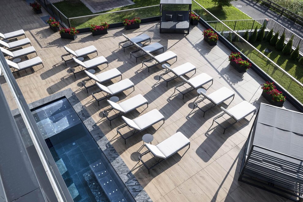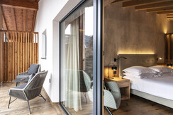 Arredate in legno vecchio o in larice nordico in perfetta sintonia con uno stile moderno. Queste spaziose camere deluxe di 30 m² con pavimento in legno, dispongono di comodo divano letto, LCD-TV, cassaforte, telefono, frigo bar, Wi-Fi gratuito, balcone attrezzato con poltroncine e tavolino. Bagno con ampia doccia, accappatoi e ciabattine, asciugacapelli, specchio cosmetico.