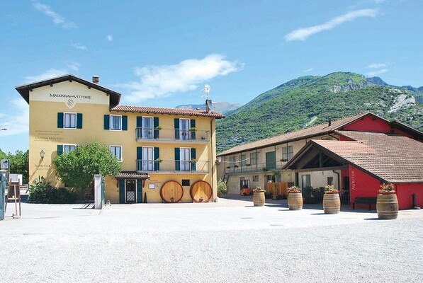 L'Agritur Madonna delle Vittorie offre uno spazioso appartamento arredato con cura. Posizione ideale per gli amanti dello sport e del wellness. Proprietà affacciata sui vigneti. Accesso diretto alla pista ciclabile Arco-Torbole e spiaggia raggiungibile in 5 minuti, senza passaggi stradali. L'appartamento, di circa 100 mq, è composto da una camera matrimoniale e una quadrupla, bagno con finestra, cucina completamente attrezzata, ampio soggiorno con divani, TV, balcone e caminetto. Biancheria da letto e da bagno inclusa, accesso Internet gratuito, riscaldamento, cassaforte, parcheggio privato e deposito biciclette.