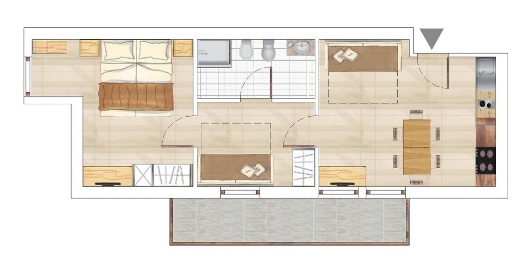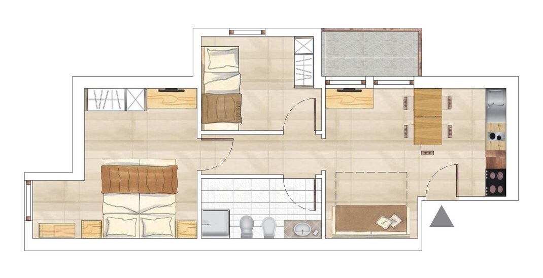 - Trilo: 2 camere (di cui 1 con letto a castello), soggiorno/cucina e 1 bagno