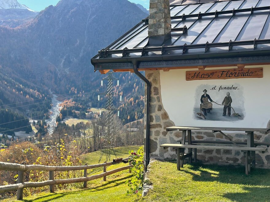 Maso Florindo è un antica dimora e fienile dei primi dell'800 e, sebbene siano passati molti anni, in questo angolo diParadiso il tempo sembra essersi fermato, forse per contemplare lo splendore della cima Presanella o la quiete deigrandi prati che si estendono davanti al giardino.