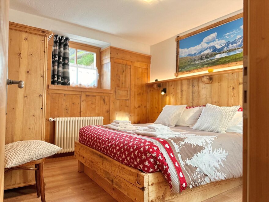 Le finiture in legno e i dettagli delle pareti evocano la natura circostante, conservandone il calore e portando il profumo di montagna anche all'interno.