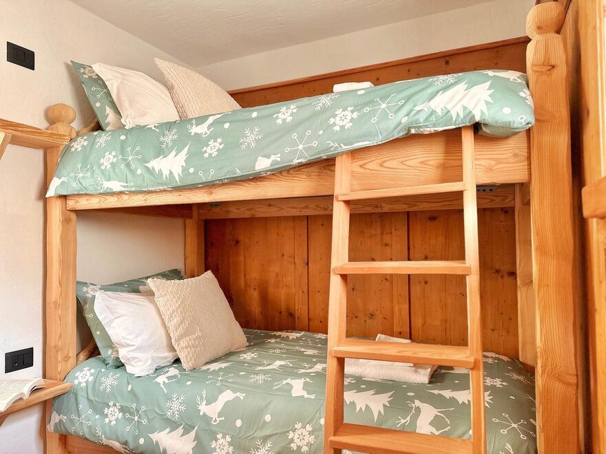 L'area notte è composta da una camera matrimoniale con tv e una camera doppia con letto a castello.