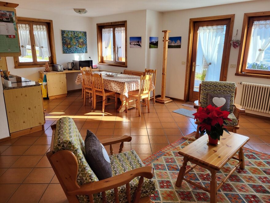 Grazioso appartamento al piano terra situato in zona residenziale di Cavalese, con vista sulla catena del Lagorai, nelle immediate vicinanze del parco della Pieve ed impianti di risalita del Cermis. Dispone di zona giorno con cucina e salotto, 3 camere da letto, doppi servizi, garage e cantina.