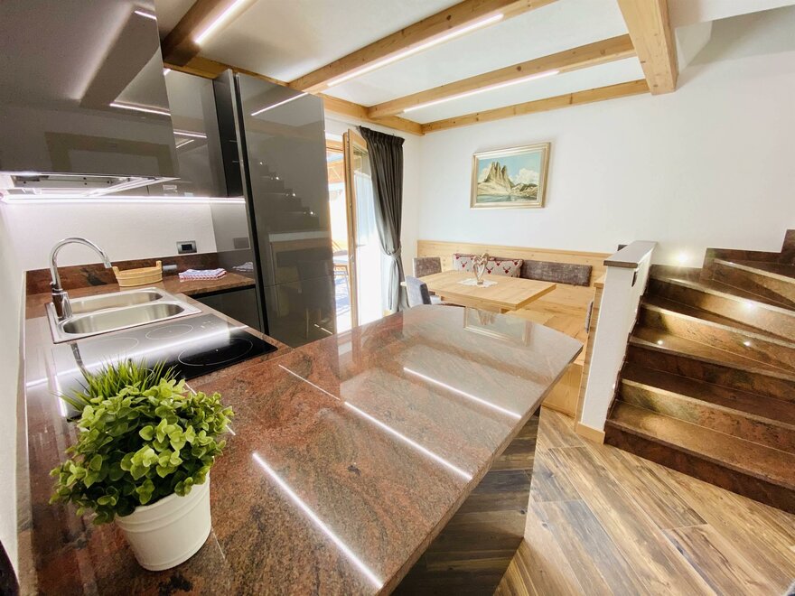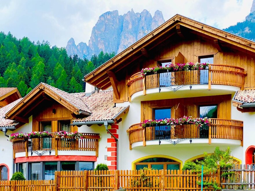 La casa si trova a Pera di Fassa (nel comune di San Giovanni di Fassa), a solo 1,5 km dall’ abitato di Pozza di Fassa. A 500 metri si trova l'impianto di risalita per la skiarea Catinaccio e dal camposcuola Fraine con snowpark per bambini. Poco distante dall'anello per lo sci da fondo e in estate dalla pista ciclabile e dalla passeggiata lungo il torrente Avisio. La fermata di bus e skibus si trova a 150 metri. A 2 km l'impianto di risalita per la skiarea Buffaure, collegata con un nuovo impianto con le piste del Sellaronda e Dolomiti Superski.