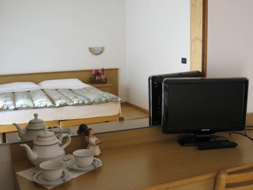 La struttura dispone di 13 camere luminose e confortevoli e per la maggior parte dotate di terrazza panoramica con vista sulle Dolomiti. Ogni stanza è provvista di pavimenti in parquet, TV a schermo piatto e cassaforte per garantire il massimo comfort. Il bagno privato, presente in ciascuna camera, è completo di doccia, asciugacapelli e set di cortesia per un’esperienza di soggiorno piacevole e rilassante. Disponiamo anche di 3 camere accessibili alle persone con disabilità motoria e sensoriale con servizi dedicati.