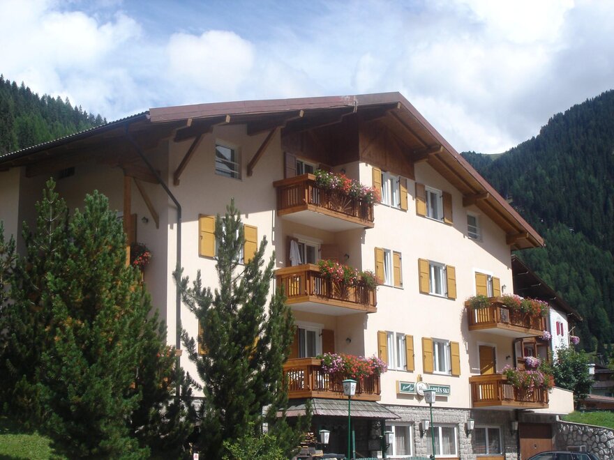 Si esce a BELLUNO e si prosegue per Ponte nelle Alpi fino a Belluno. Una volta a Belluno, si prosegue per Agordo (Strada Regionale 203), Cencenighe, Alleghe e Caprile, da dove la direzione del Passo Fedaia. Scesi dal Passo Fedaia si prosegue per Canazei. Arrivati in paese si segue la statale Dolomiti in direzione centro; si gira poi a sinistra in via Roma e la si percorre fino al bivio.