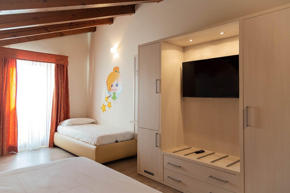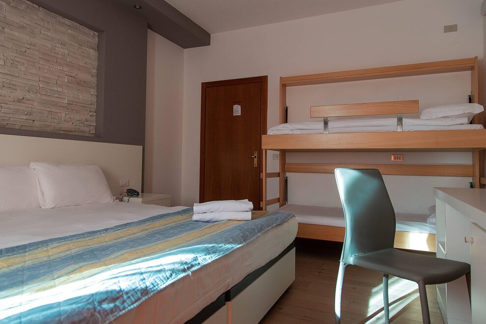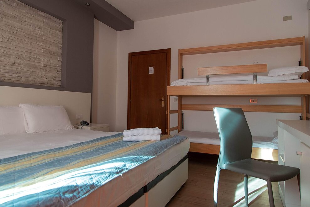 CampanulaE’ una camera quadrupla con letto matrimoniale e letto a castello; dotata di parquet ha una superficie di circa 16 metri quadri e dispone di un balcone, sempre molto apprezzato dalle famiglie d’estate e d’inverno. Alcune di queste camere possono accogliere persone diversamente abili. Le camere Campanula sono dotate di tutti servizi, come Tv satellitare, asciugacapelli, cassaforte, frigobar.
