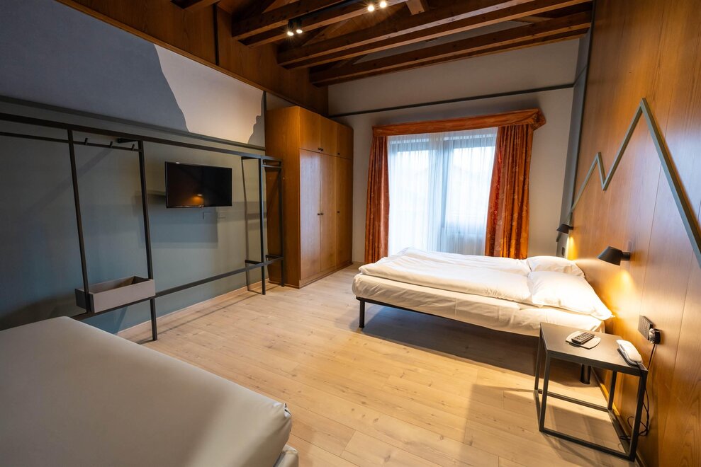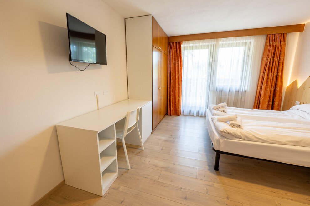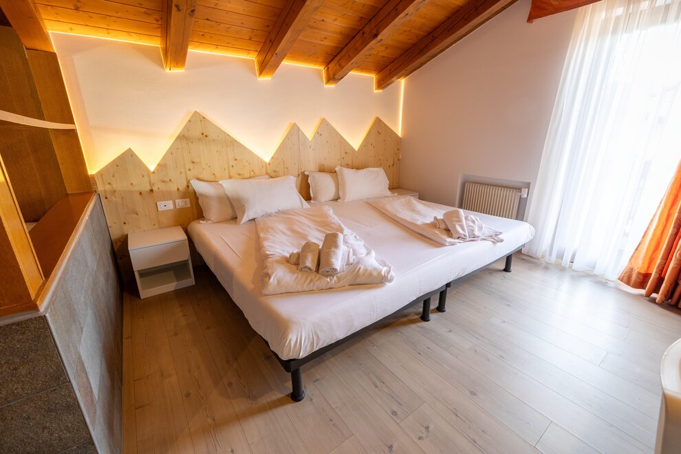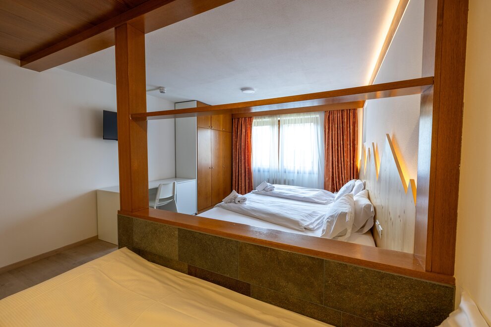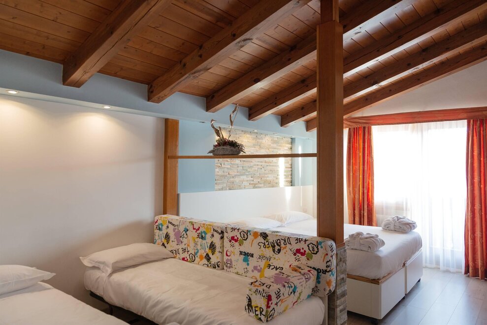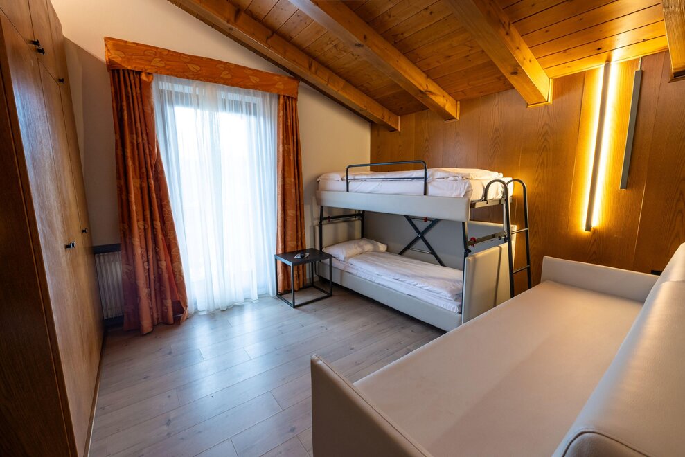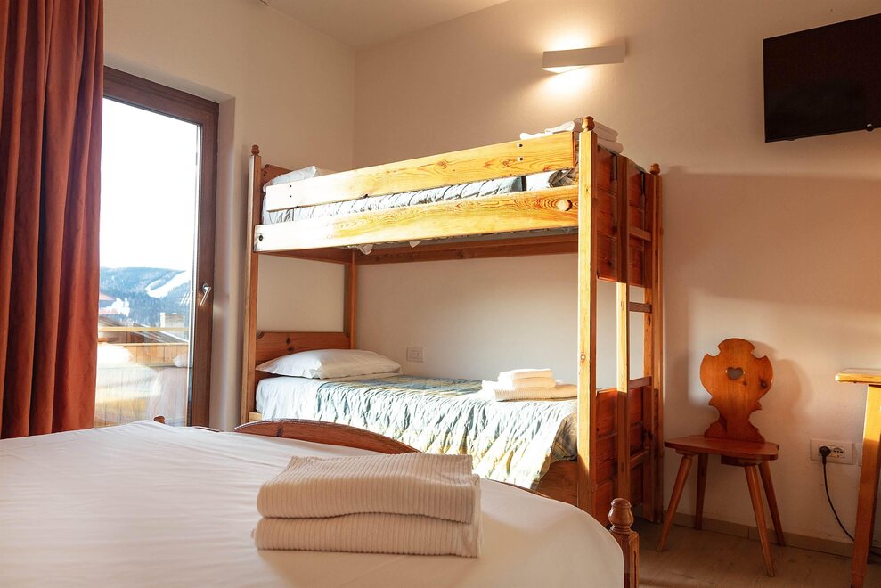 Stella AlpinaQueste camere si trovano nello Chalet 3, hanno una superficie media di circa 20 metri quadrati e sono tutte rivolte verso sud. Le camere Stella Alpina sono dotate di parquet e possono ospitare famiglie con due bambini. Le camere Stella Alpina hanno un letto matrimoniale e un letto a castello oppure matrimoniale e letto singole per la camera triplaQueste camere hanno il balcone, ma non sono servite da ascensore.