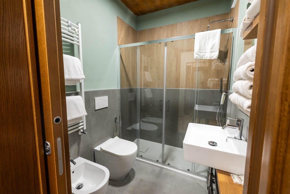 La Suite è dotata di tutti i comfort tra cui il set di accappatoi per gli adulti e il garage coperto.Questa camera non è servita da ascensore.