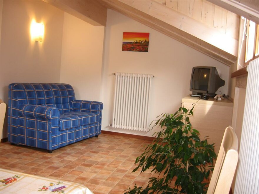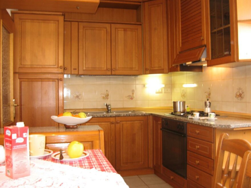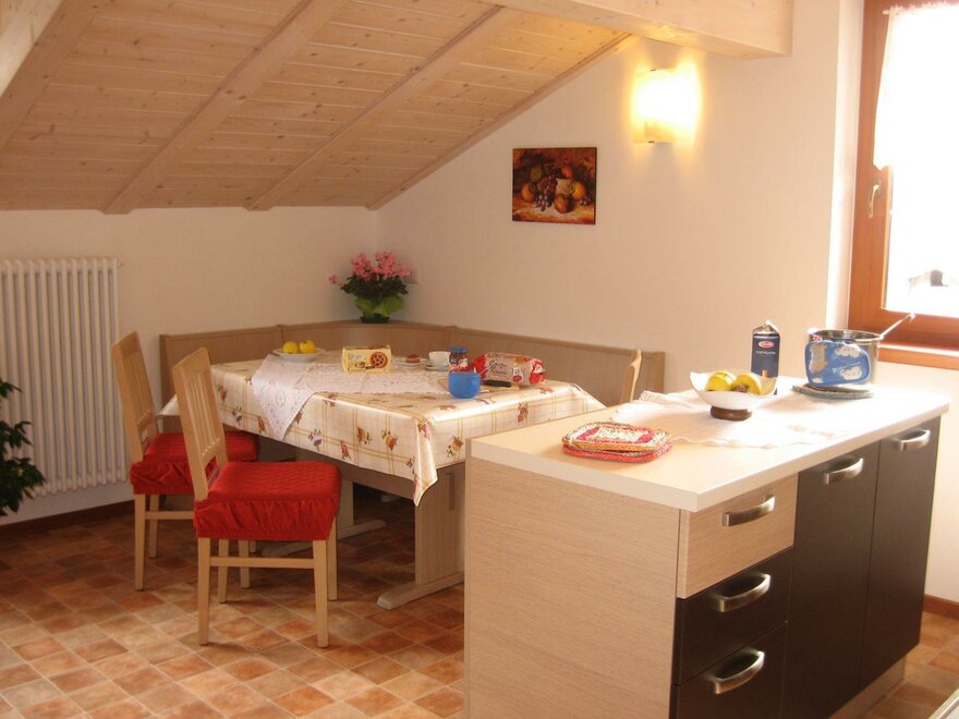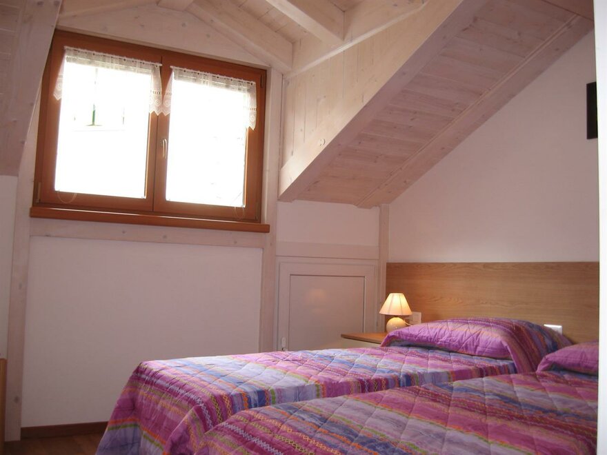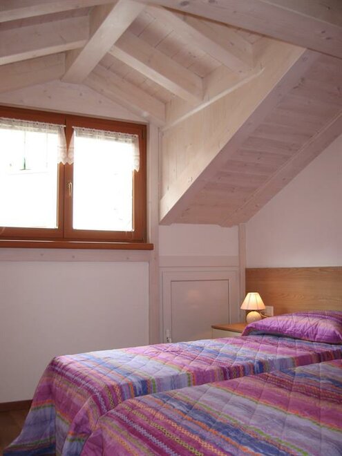 L’appartamento trilocale situato al secondo piano mansardato con legni a vista è composto di cucina-soggiorno con lavastoviglie, 2 stanze da letto (con in totale 5 posti letto), 1 bagno con doccia e 1 comodo divano letto in soggiorno.