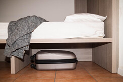 Le nostre camere doppie sono tutte confortevoli, con un arredamento in legno semplice e funzionale. A fianco di ogni letto c'è un 'cubotto' con presa elettrica per caricare lo smartphone e appoggiare gli oggetti personali.