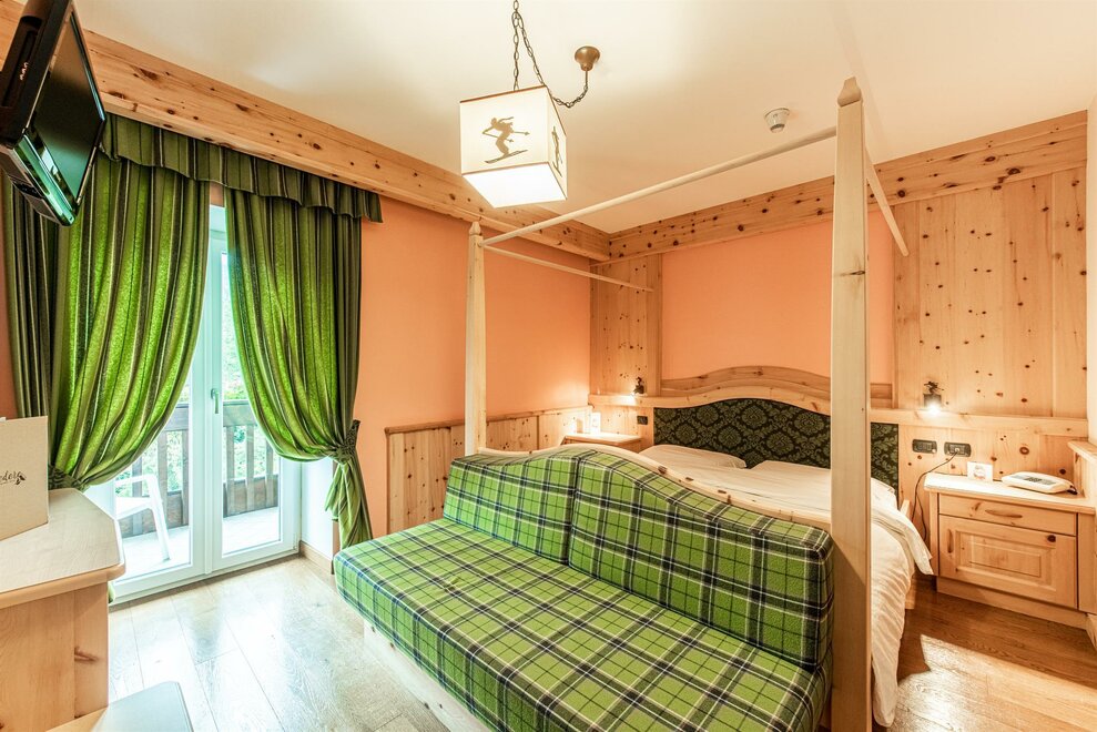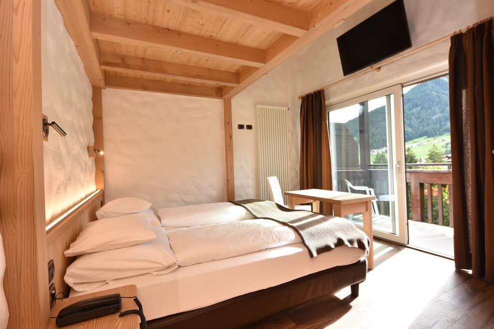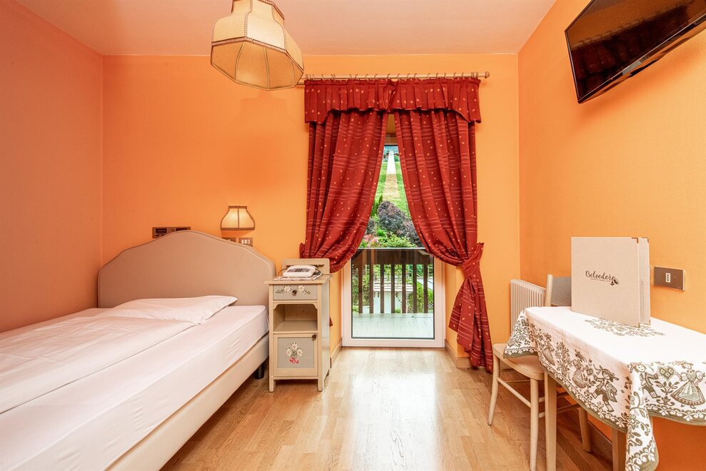 Accoglienti camere singole caratterizzate da un arredamento di montagna. Tutte con un balcone panoramico sulle Dolomiti. Con bagno con doccia, Tv Sat, telefono, cassaforte, asciugacapelli.