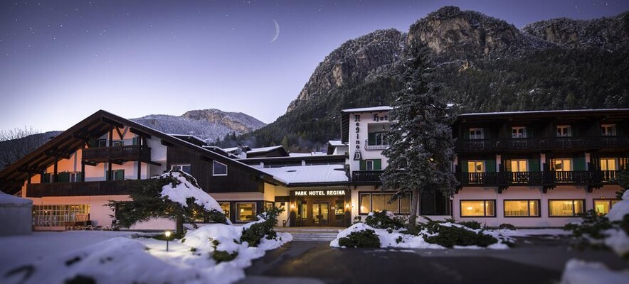 Situato nel cuore della Val di Fiemme, lungo la strada che da Cavalese porta alla Marmolada, a 45 minuti di auto da Bolzano, il Park Hotel Regina, in stile alpino, vi offre un soggiorno in un’atmosfera familiare, non priva di determinati comfort, quali WI-FI gratuito, nelle zone comuni , ampio parcheggio, centro benessere con piscina coperta, servizio noleggio di sci scarponi, ciaspole e ramponi, direttamente recapitati in Hotel. Le camere, con bagno privato, regalano viste panoramiche sulle Dolomiti, su verdi vallate, boschi di pini e cime innevate. Sono arredate con semplici mobili in legno e pavimenti in moquette, parquet, o ceramica. Il ristorante alla mattina vi offre una prima colazione con buffet italiano e internazionale. Per la cena vengono proposti piatti della cucina tipica italiana e specialità locali. Il centro benessere, per rilassarvi, vi offre, oltre alla piscina coperta, sauna, bagno turco, nebbia tropicale e massaggi (su prenotazione), Zona fitness con macchine Technogym.