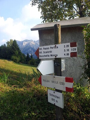 Dal Rifugio Passo Pertica lungo strada sterrata (segnavia 109) in 45 minuti di cammino (difficoltà E).