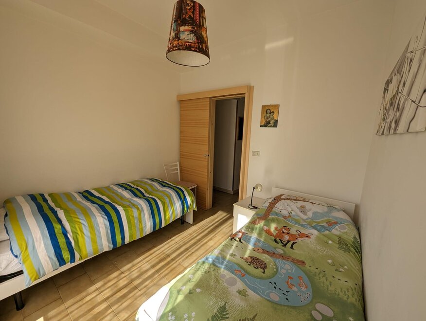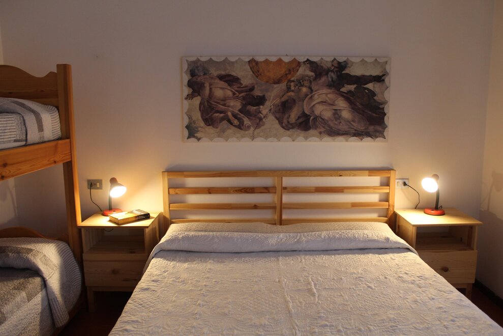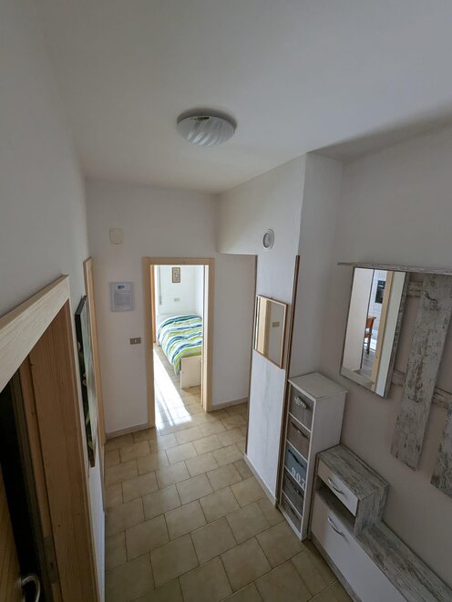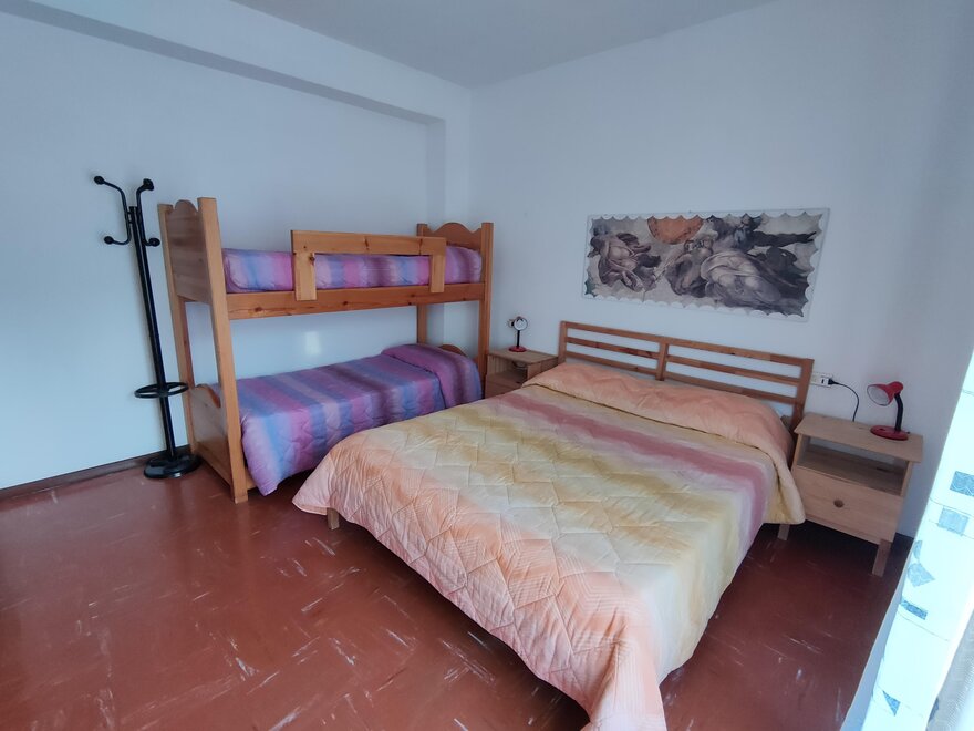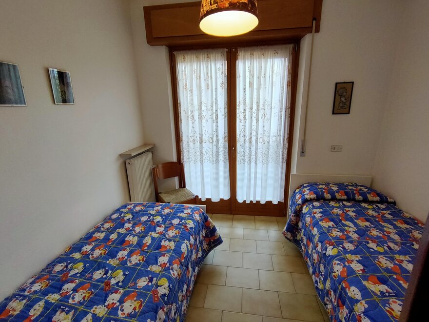 Appartamento per famiglie con bambini al terzo piano di 65 mq costituito da soggiorno con angolo cottura dotato di forno a microonde, corridoio, bagno e doccia dotata di phon, riscaldamento centrale, balcone, lavatrice, asse e ferro da stiro, aspirapolvere, televisore con antenna satellitare, seggiolone e lettino, biancheria da cucina, da camera e da bagno (a richiesta), terrazza, cortile con barbecue, posto macchina all’aperto riservato, ascensore, biciclette a disposizione, telefono in comune, si accettano animali di piccola taglia.