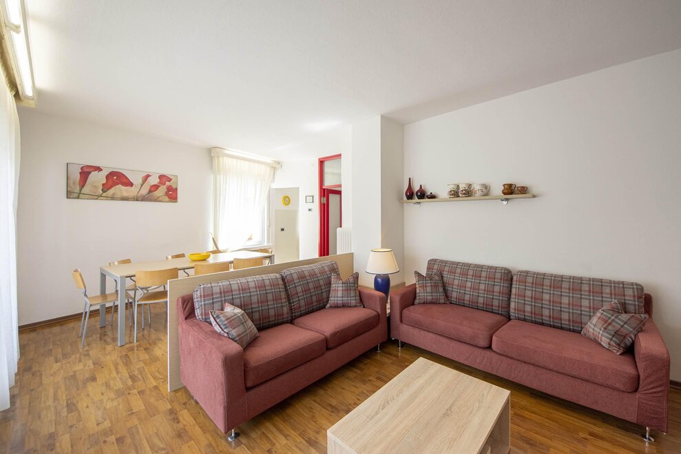 L'appartamento situato al piano terra è di 60mq. E' composto da due camere a due letti e due bagni con doccia e asciugacapelli.