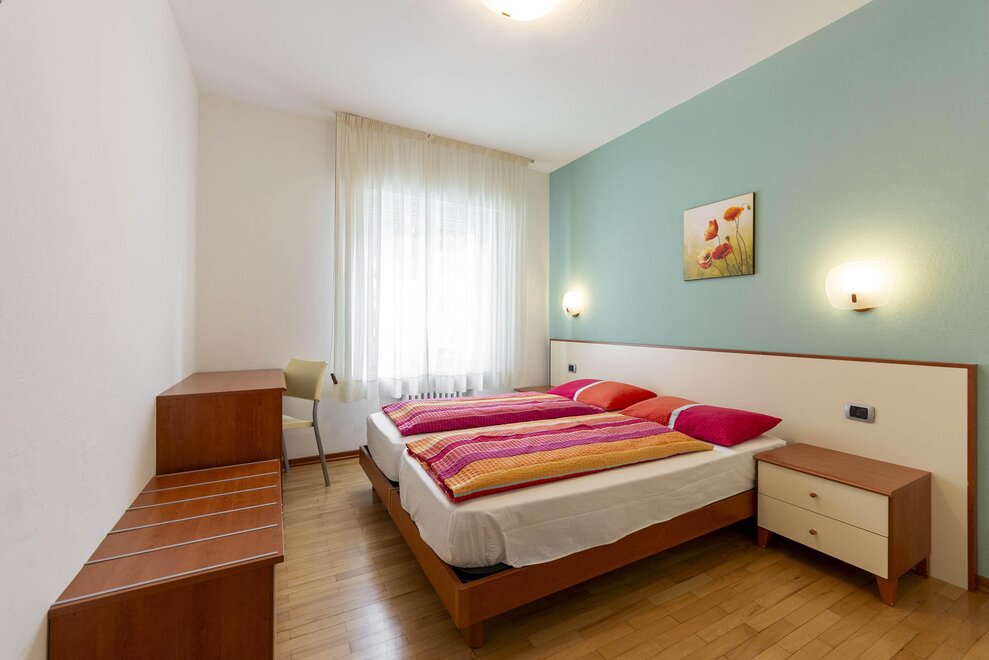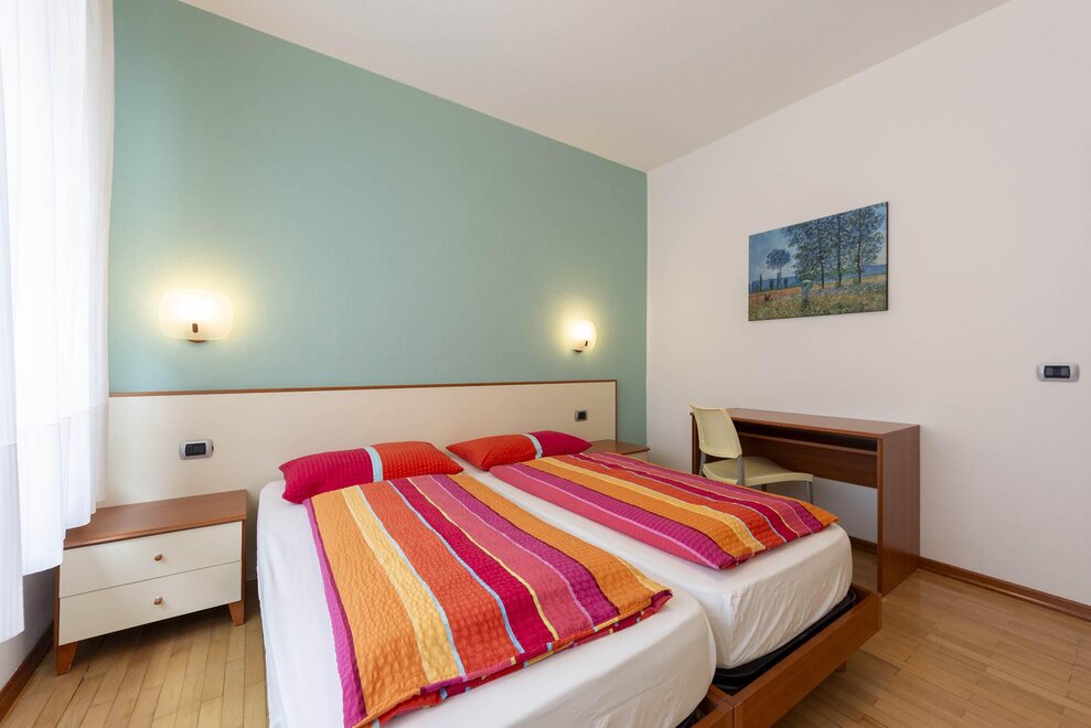 L'appartamento situato al piano terra è di 45 mq. E' composto da una camera a due letti e un bagno con doccia e asciugacapelli.