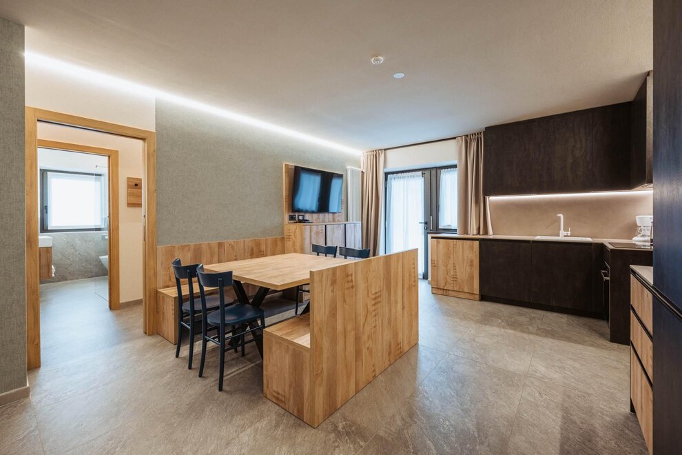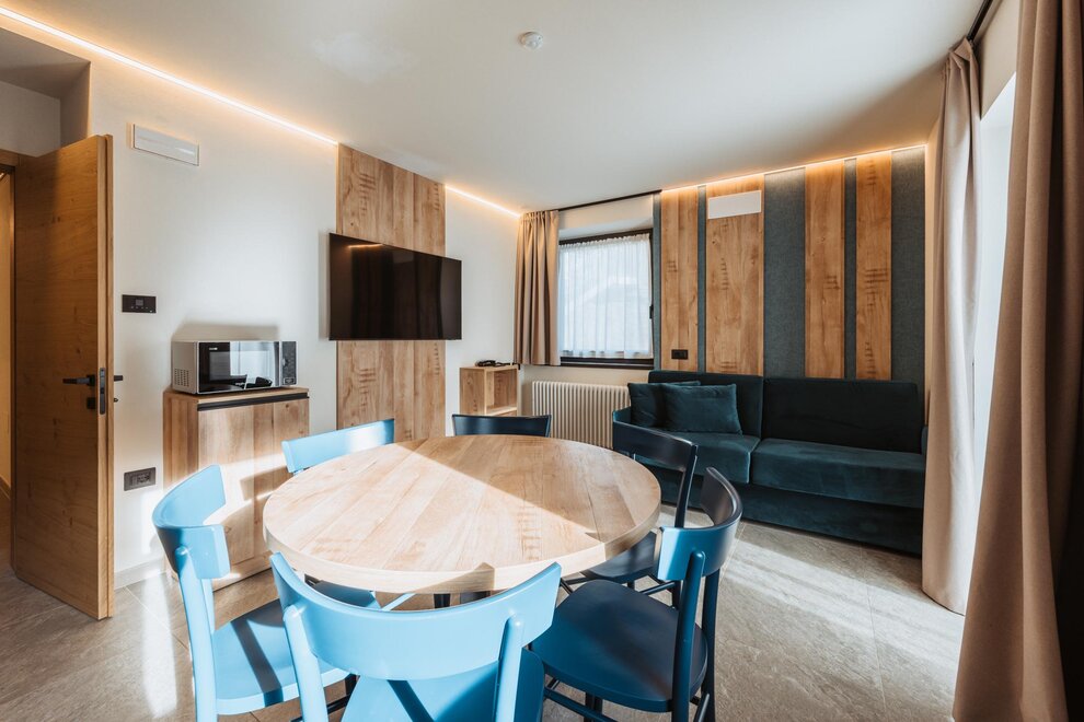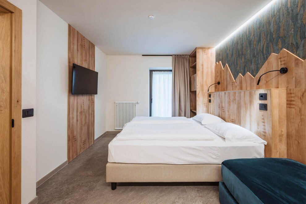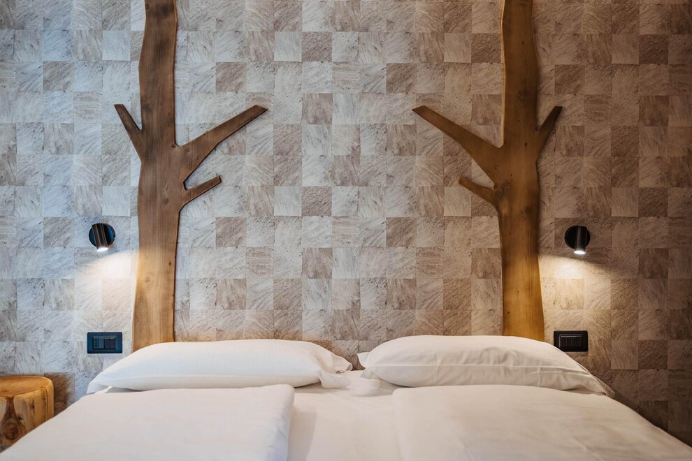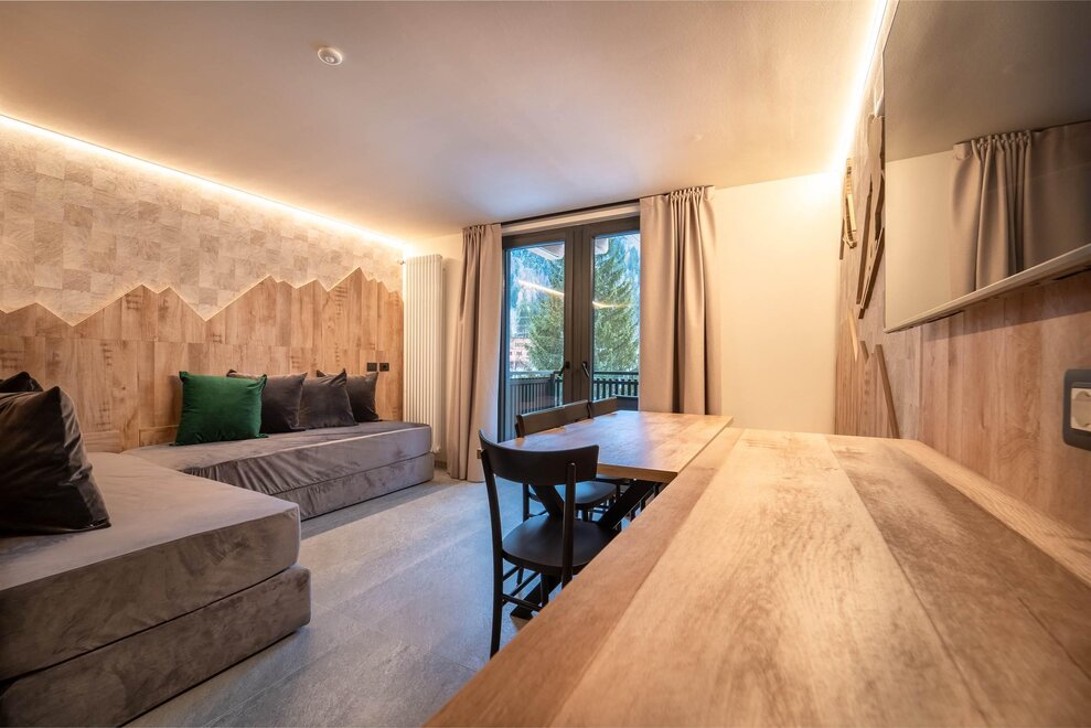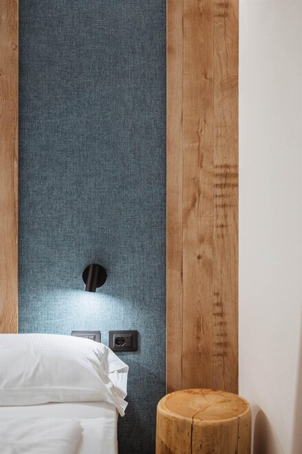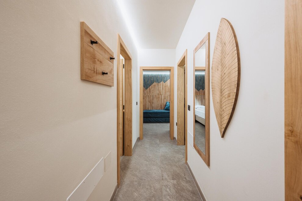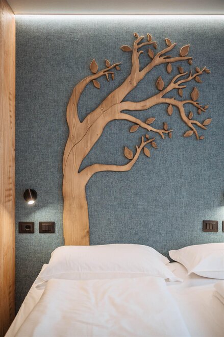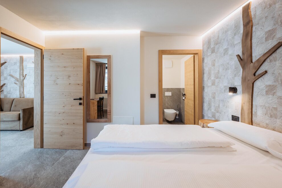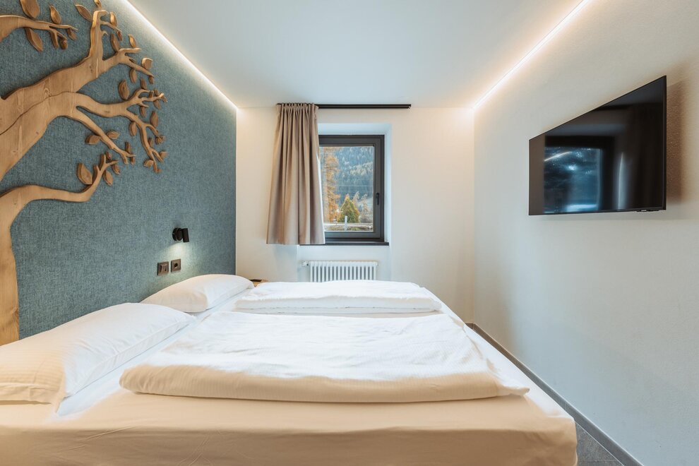 Gli ampi spazi sono caratterizzati da colori che si ispirano alla natura primordiale della Val di Sole e che fanno sentire un tutt’uno con l’ambiente circostante.