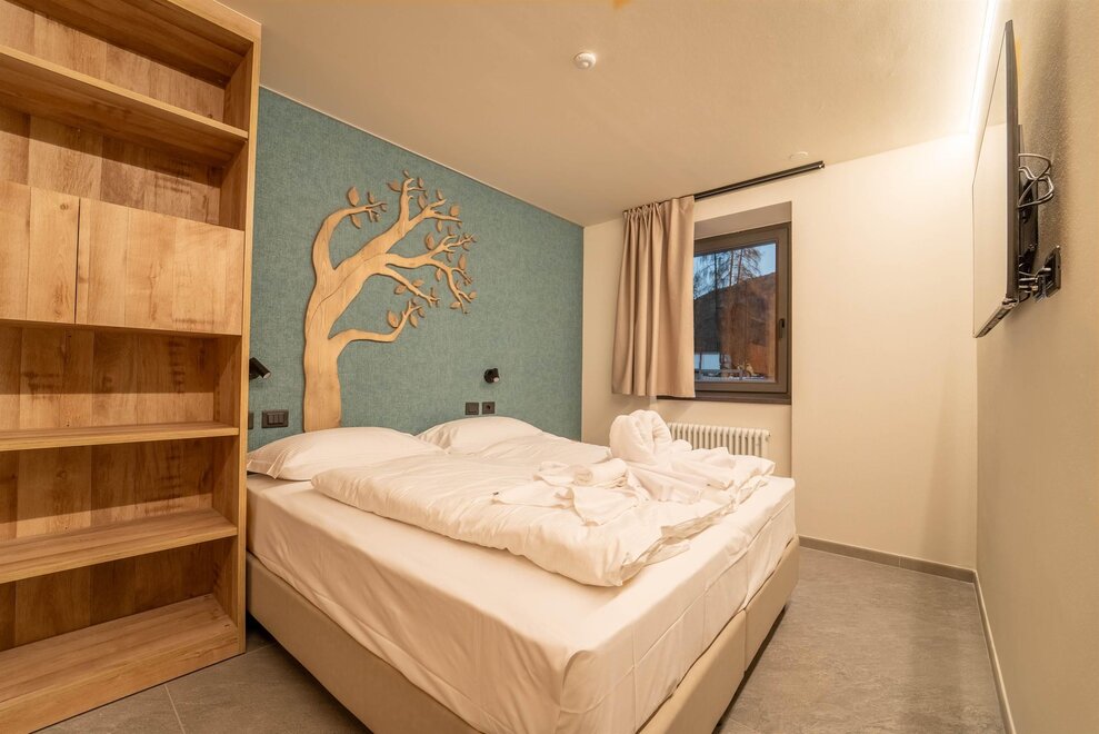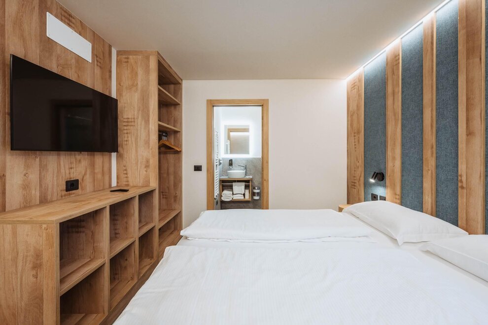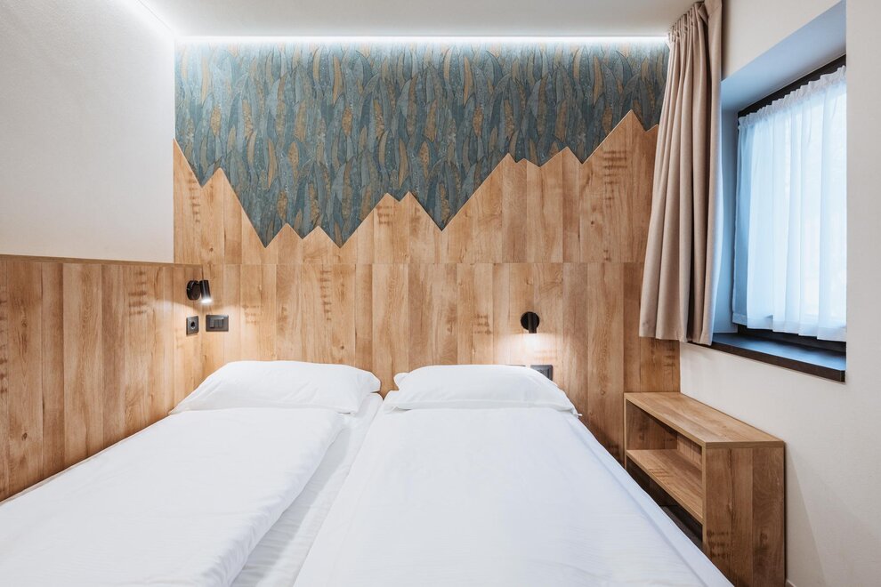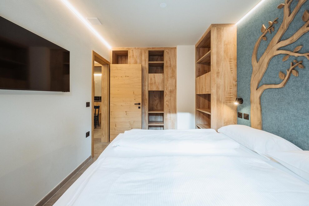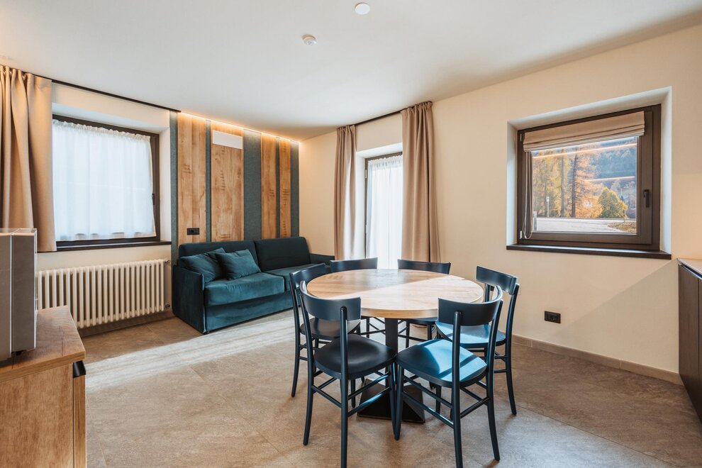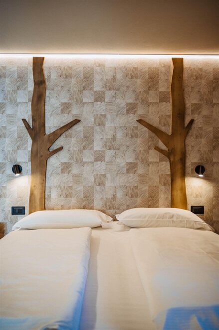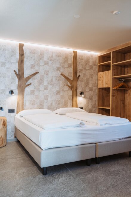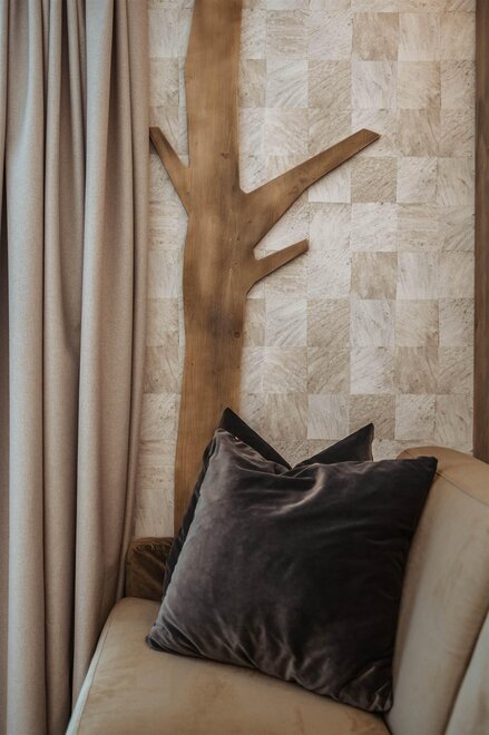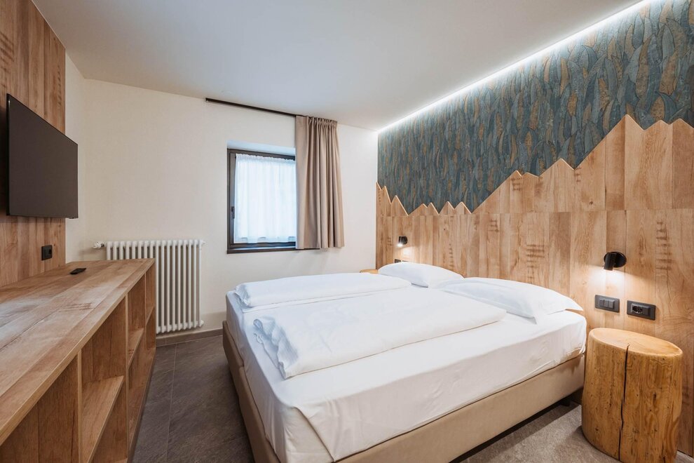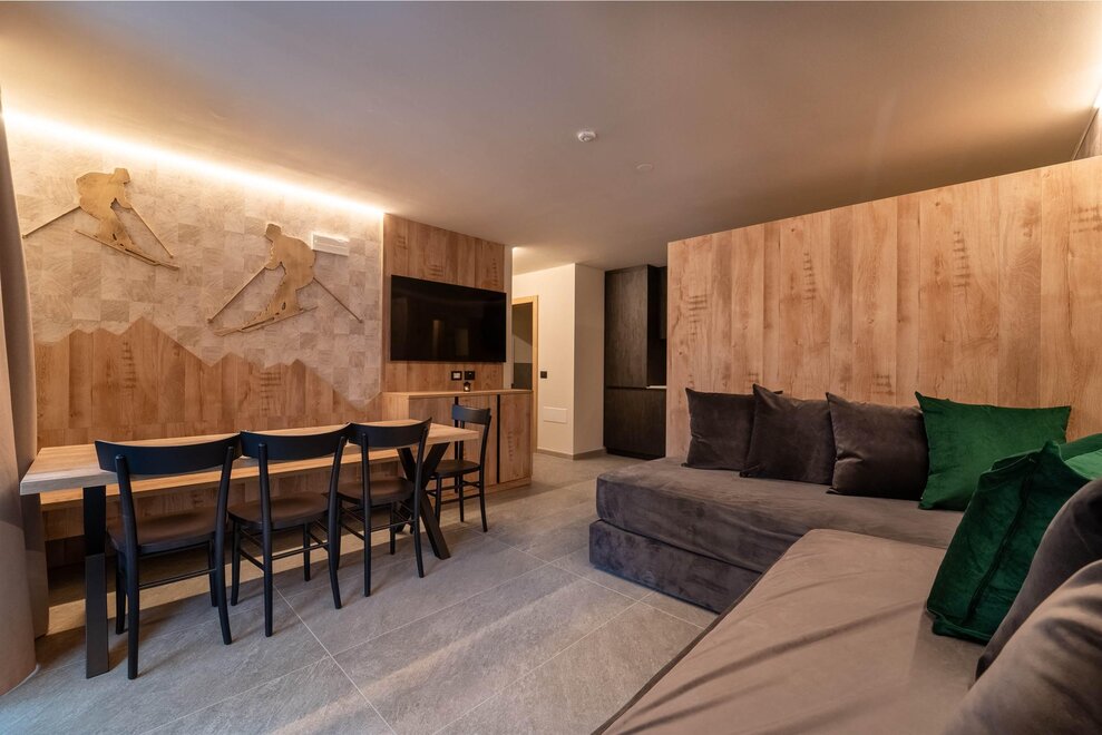 Gli ampi spazi sono caratterizzati da colori che si ispirano alla natura primordiale della Val di Sole e che fanno sentire un tutt’uno con l’ambiente circostante.