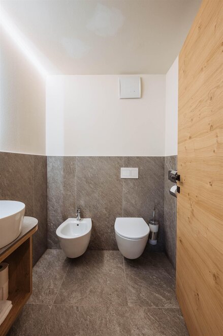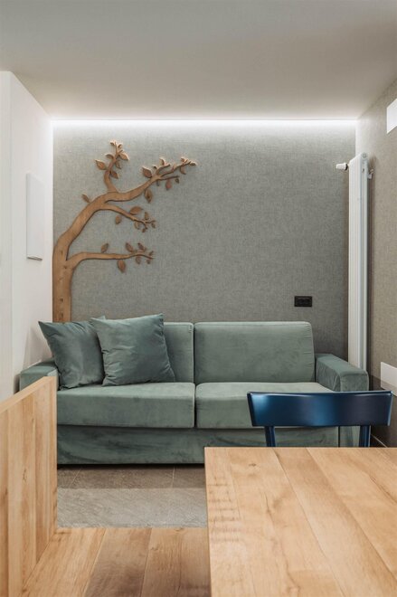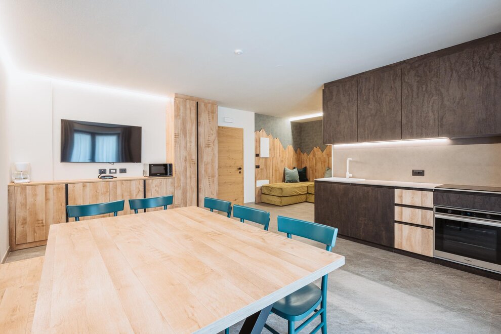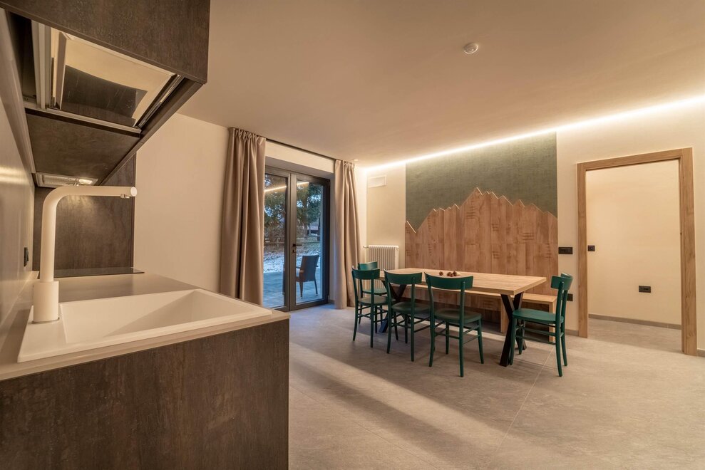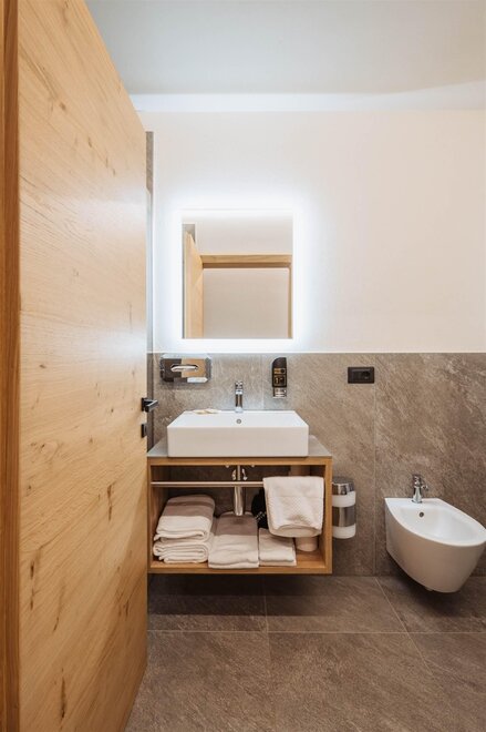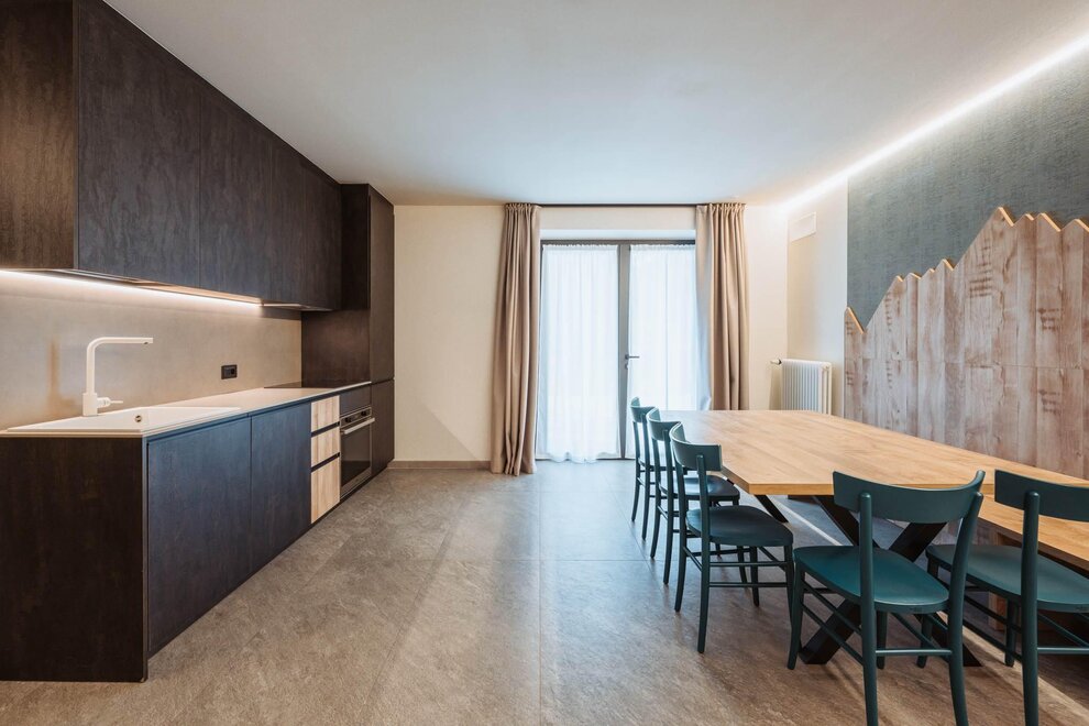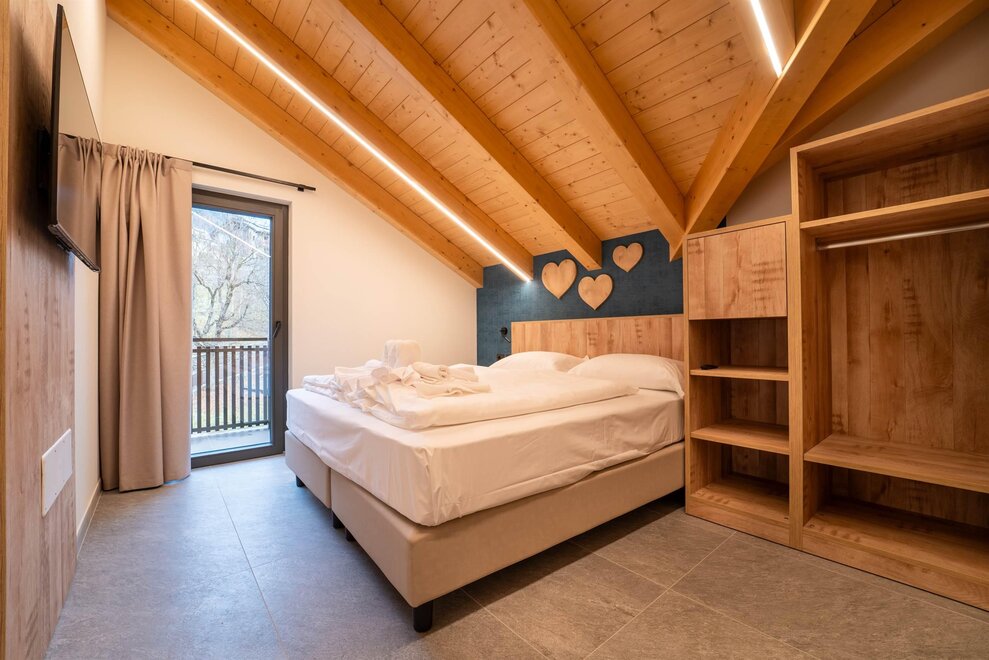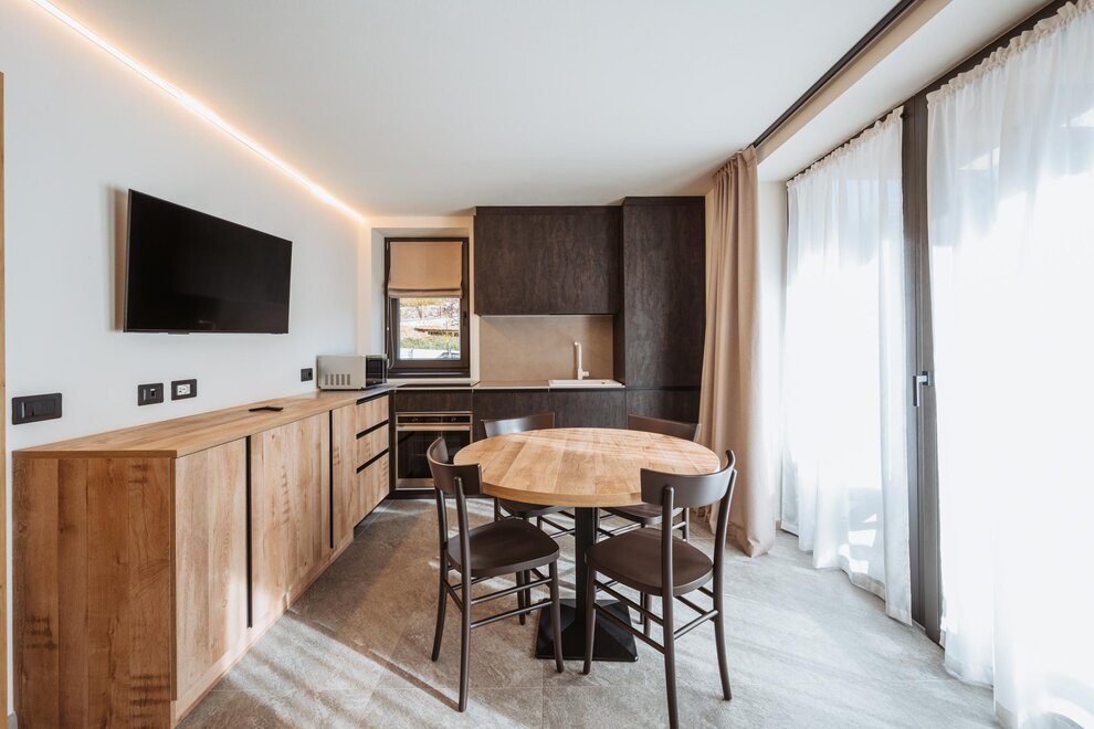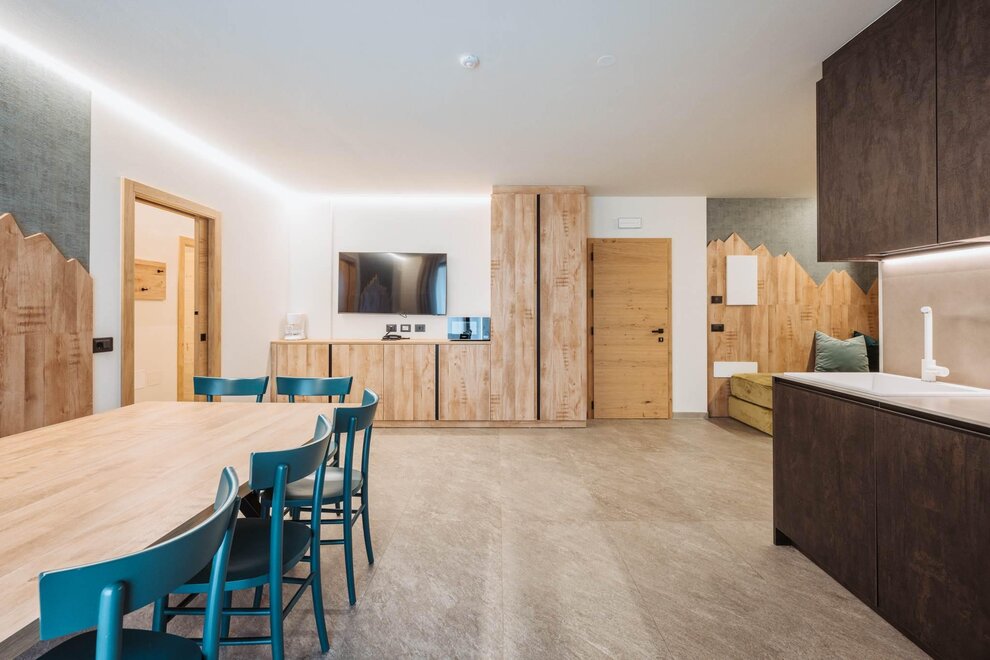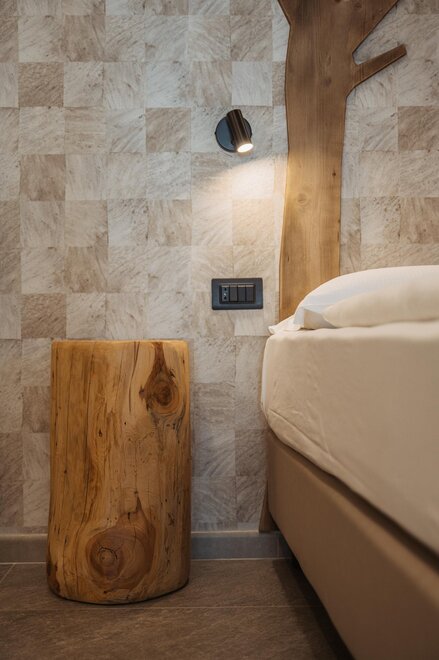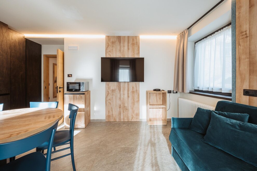 Gli ampi spazi sono caratterizzati da colori che si ispirano alla natura primordiale della Val di Sole e che fanno sentire un tutt’uno con l’ambiente circostante.