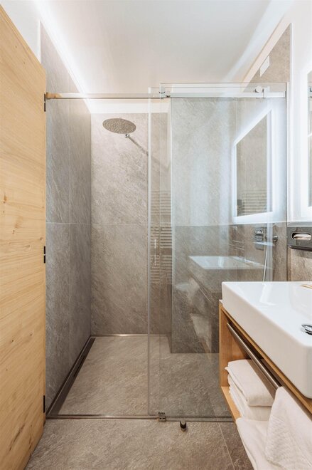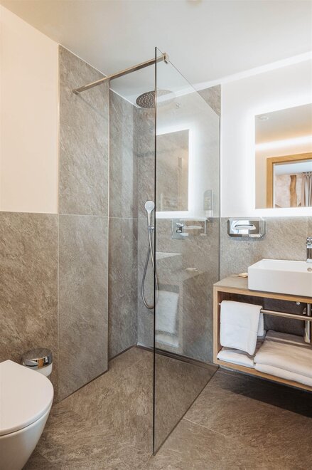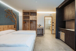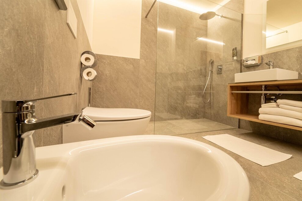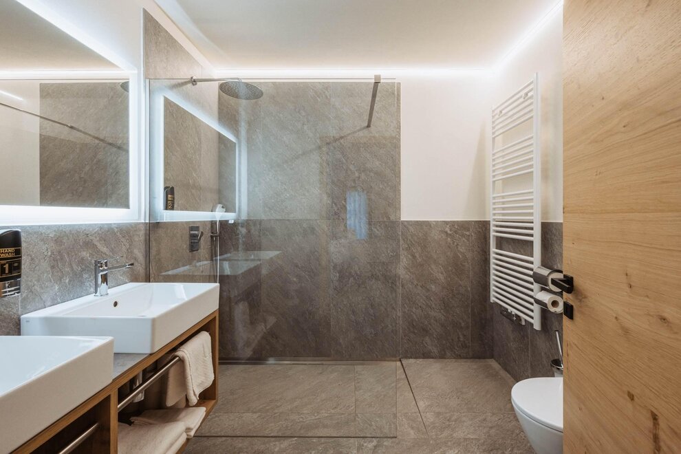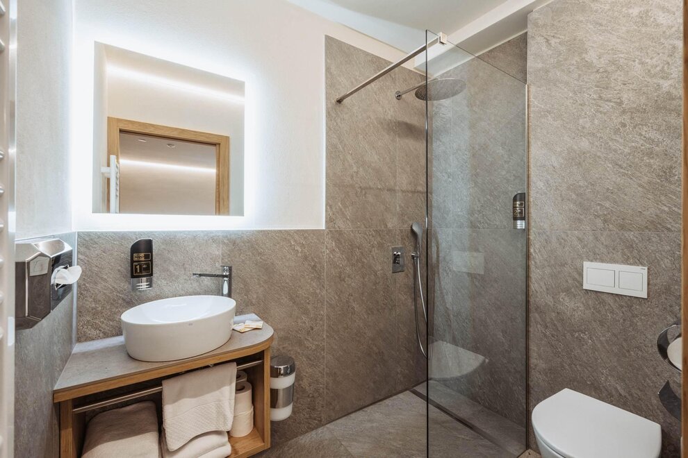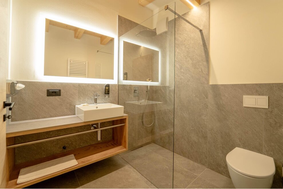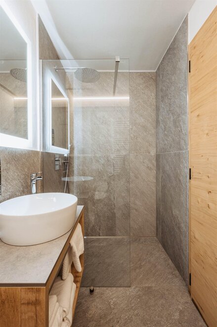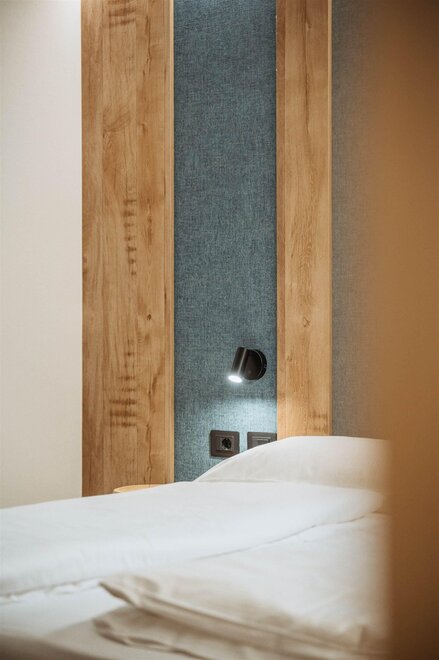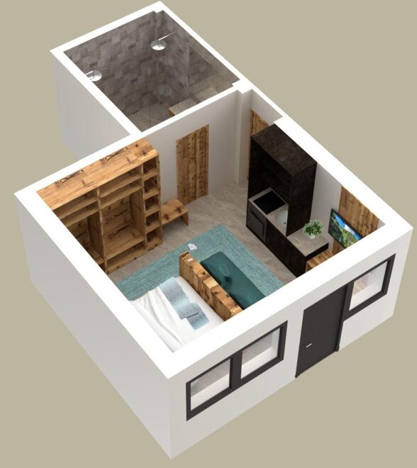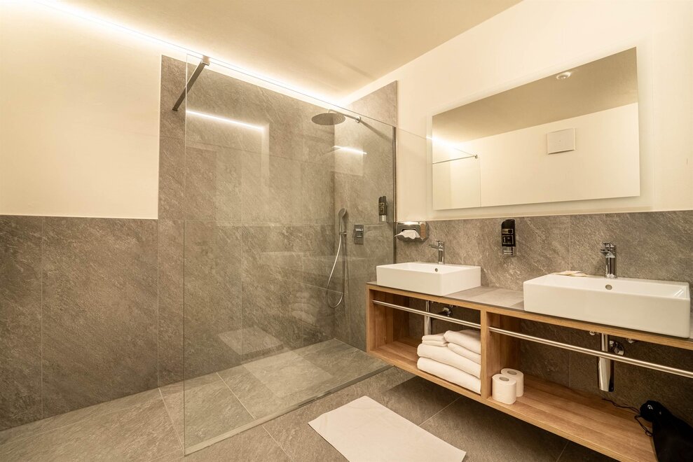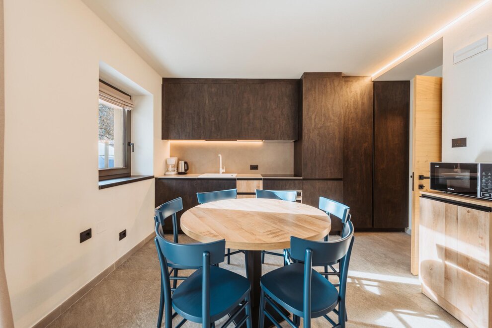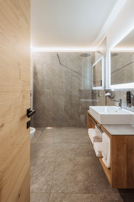 Gli ampi spazi sono caratterizzati da colori che si ispirano alla natura primordiale della Val di Sole e che fanno sentire un tutt’uno con l’ambiente circostante.