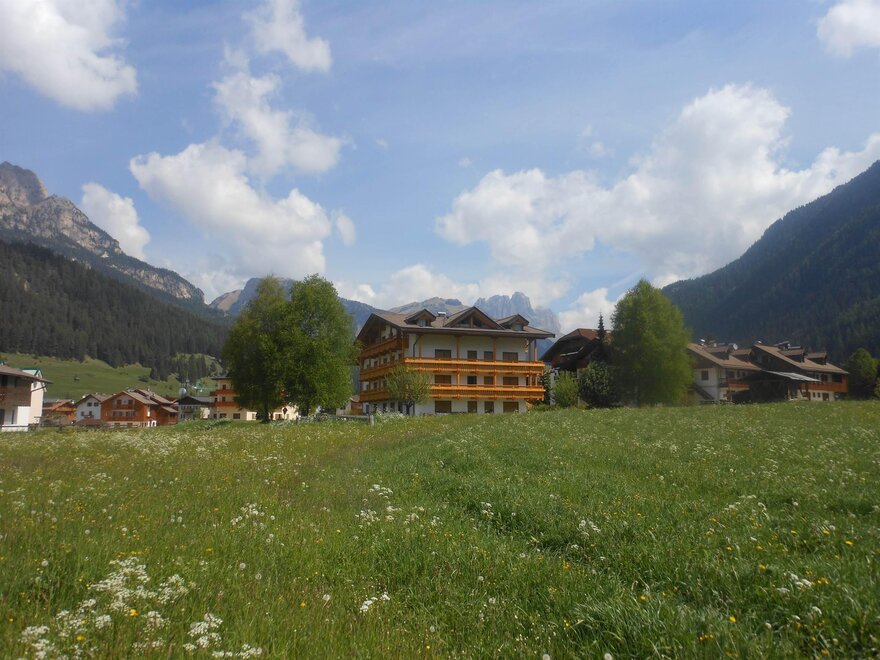 Situato al centro dell'ampia conca di Pozza di Fassa, circondato dalla verde piana di Dassè, gode di una ideale posizione tranquilla e panoramica sulle Dolomiti fassane. Dotato di parcheggio, un ampio giardino a verde con barbecue e di un confortevole soggiorno interno, offre appartamenti monolocali, bilocali e trilocali, dotati di angolo cottura con frigo, attrezzatura da cucina, biancheria da bagno, letto e tavolo con ricambio settimanale, luce e gas/elettricità.