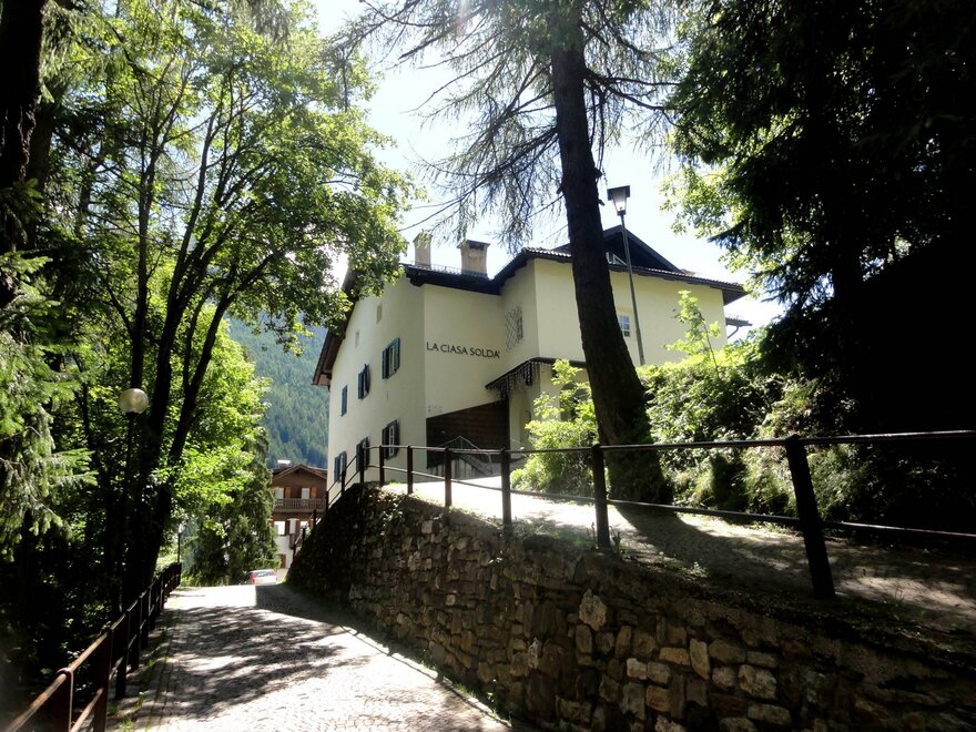 La Ciasa soldà, antica casa del '500 i cui disegni storici a pian terreno ricordano le avventure di “Silvestro Soldà” nelle guerre contro i Turchi, è adagiata su 3000 mq di prato presso la Pieve di S. Giovanni, in zona tranquilla e solatia, con vista panoramica su Cima Dodici, il Latemar e il Catinaccio (patrimonio UNESCO), nelle immediate vicinanze del centro del paese, raggiungibile in 5 minuti a piedi. Supermercato, negozi, panetteria, banca, ufficio postale e la fermata dell'autobus si trovano a pochi passi.
