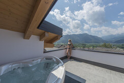 doppia o matrimoniale arredo e parquet in rovere naturale anallergico e mansardato in abete naturale, angolo salotto con comodo divano e possibilità di terzo e quarto letto, scrivania, frigobar, connessione internet wi-fi, tv lcd d.t. 42”, cassaforte, bagno mosaicato con vasca, asciugacapelli , specchio da trucco e radiatore scaldasalviette, terrazzo panoramico con minipiscina – idromassaggio, vista sul “Pizzo di Levico”, sulla valle e il lago. Riscaldamento a pavimentouso spa a richiesta: non incluso in prezzi base, o incluso in pacchetti benessere