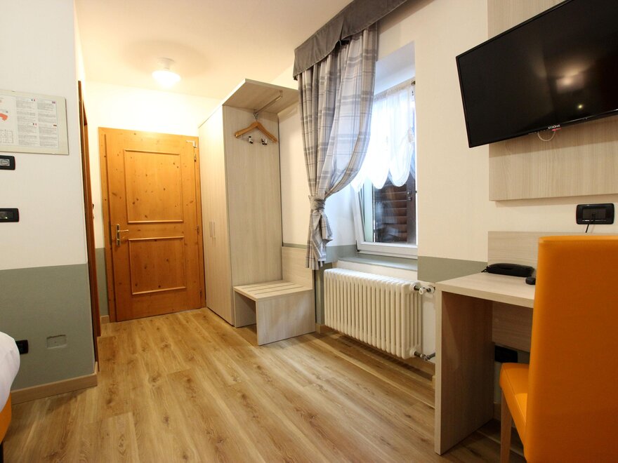 Camera singola con servizi. Tutte le camere sono dotate di tv, cassaforte, telefono, asciugacapelli, impianto TV satellitare.