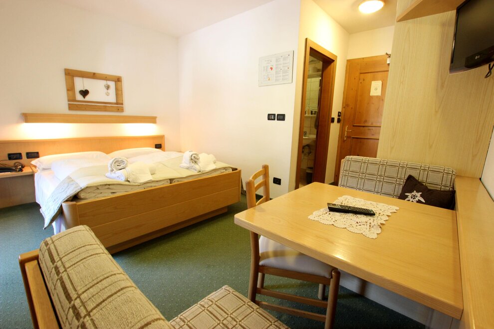 Servizi compresi: Parcheggio, Val di Fassa Guest Card, Wi-Fi, Deposito sci/biciclette, Area benessere (sauna finlandese, vasca idromassaggio, salotto relax). In estate, bici da passeggio da utilizzare per brevi spostamenti. Convenzione con noleggio e-bike. Solarium all’aperto con lettini per un bagno di natura. Giardino attrezzato, tavoli e panche in legno, nella quiete del nostro prato naturale.