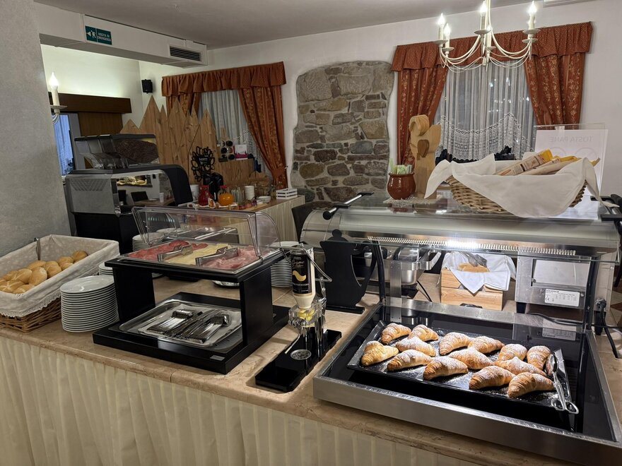 La ricca colazione e la appetitosa cena (dalla cucina classica ai piatti che celebrano la nostra cultura) sono servite in una sala ampia, moderna e luminosa. Amichevoli conversazioni sorseggiando tisane e grappe al bar dell'hotel; stube e salotti dall'atmosfera gradevole. Non siamo un family-hotel ma abbiamo creato un angolo giochi per intrattenere i più piccini.