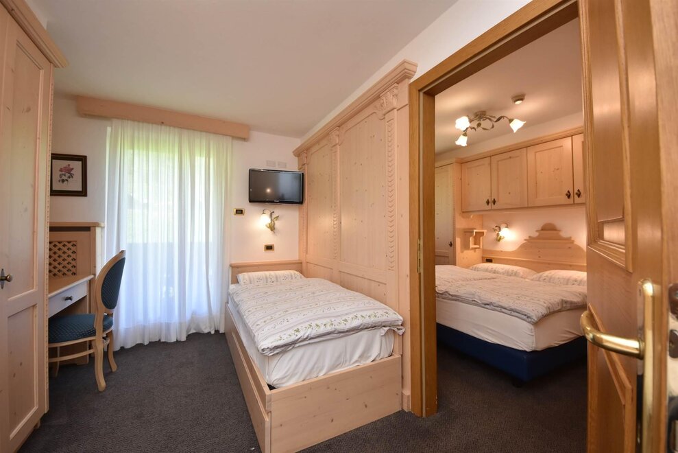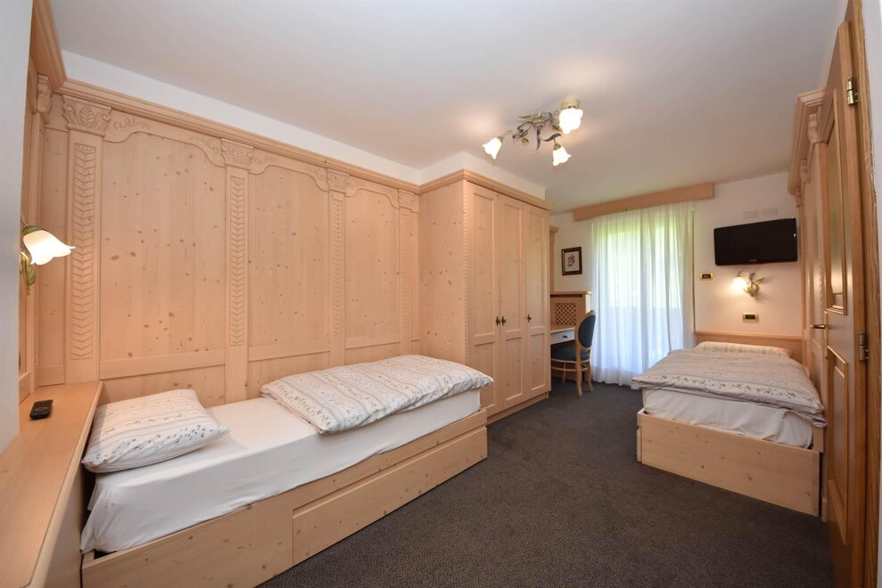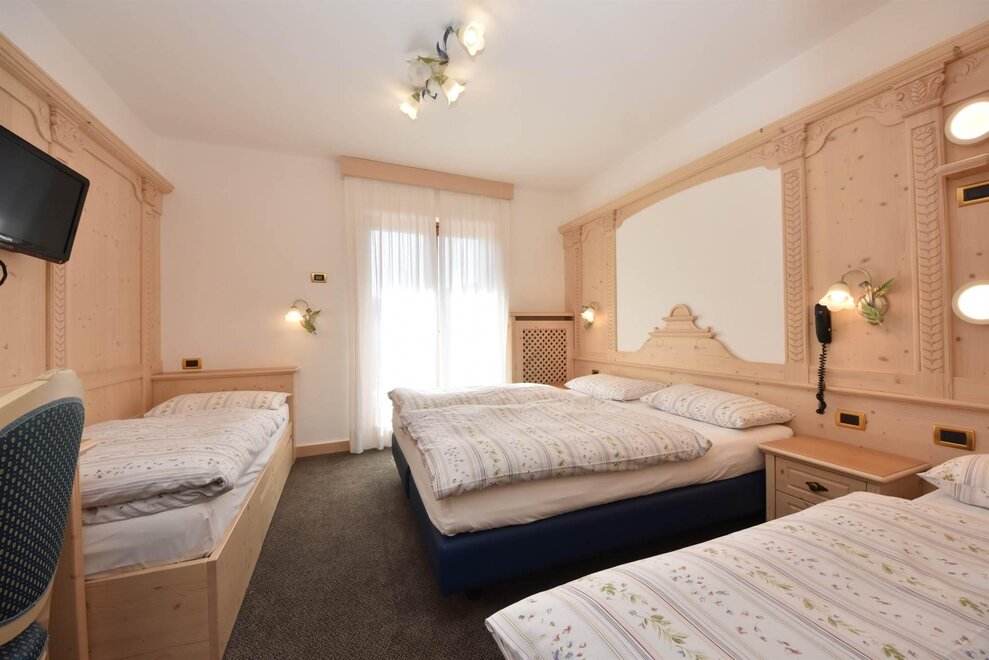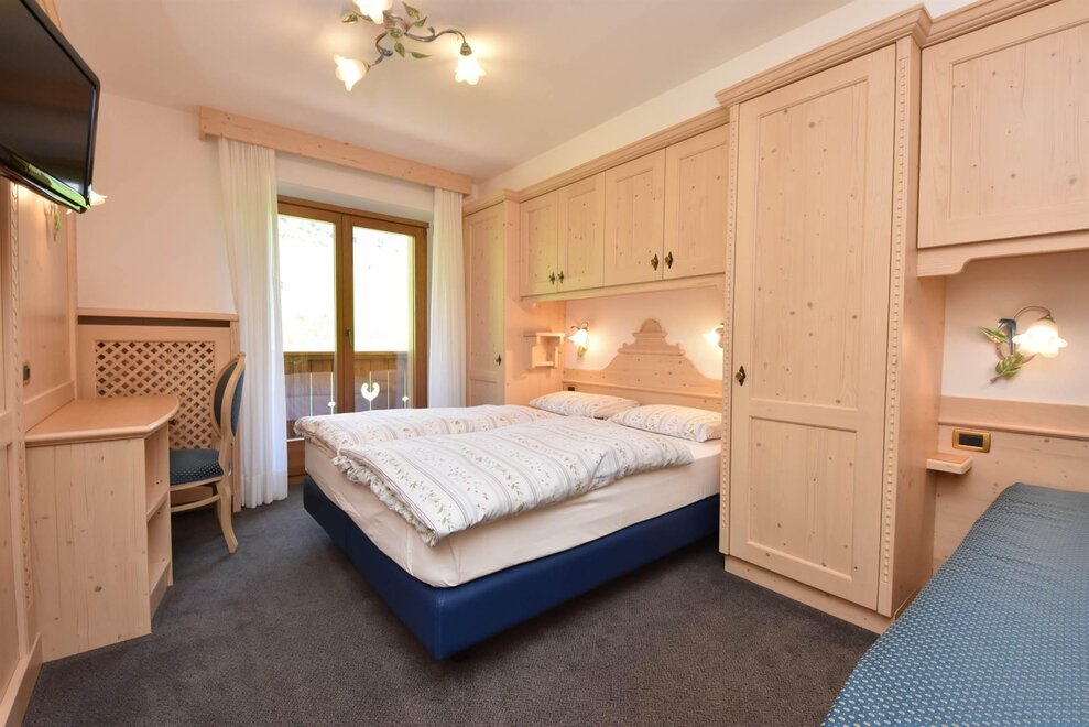 Tutte le camere dell'hotel San Marco, Passo San Pellegrino, dispongono di servizi privati con phon, TV color Lcd 26" (Sat) e cassaforte. La maggior parte dispone inoltre di balcone.