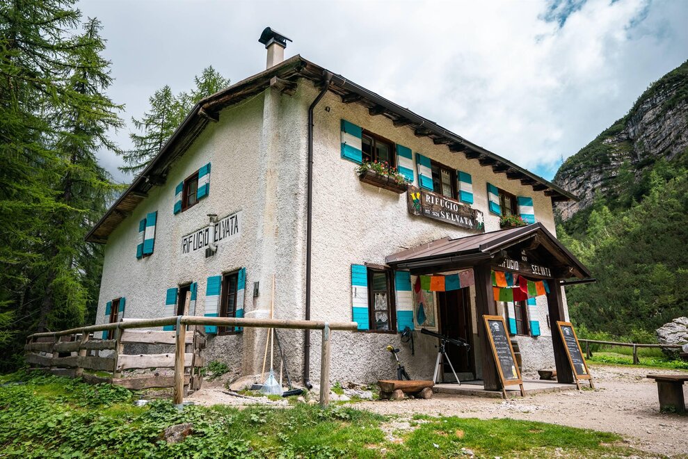 Su un pianoro verde, lungo la valle che da Molveno porta nel cuore del Gruppo di Brenta, ecco il Rifugio Selvata a 1.630 metri di quota, ai piedi dei Massodi.