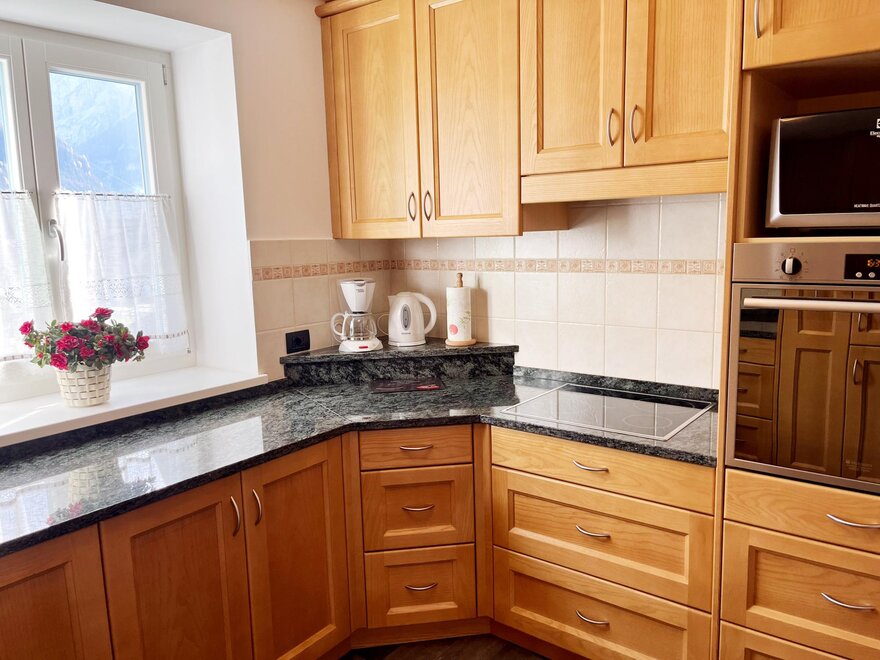 L'appartamento è dotato di lavastoviglie, forno, forno a microonde, frigo con freezer e piano cottura in vetroceramica, cassaforte, asciugacapelli.