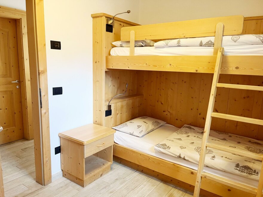 Composto da soggiorno-cucina, una camera matrimoniale una camera con letto a castello ed un bagno con doccia.