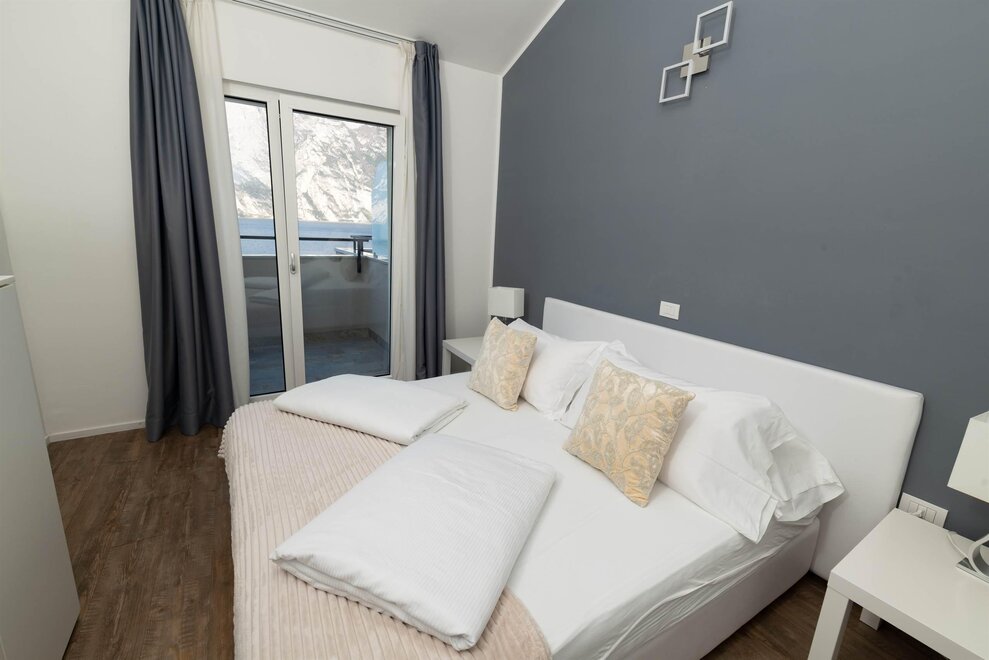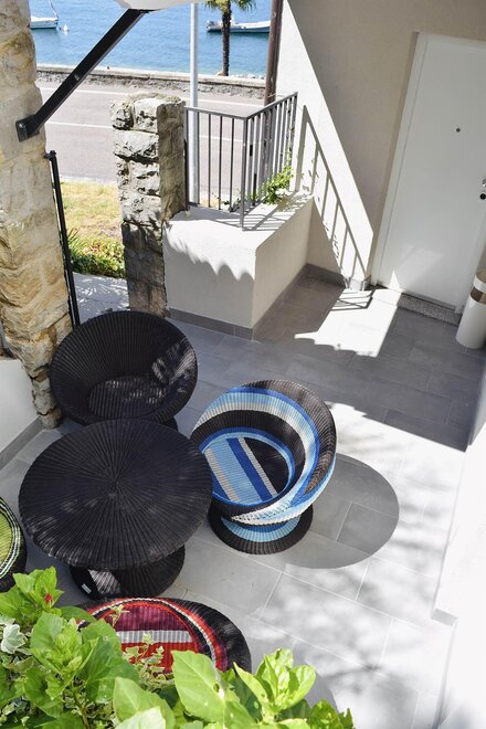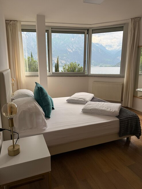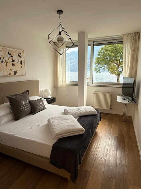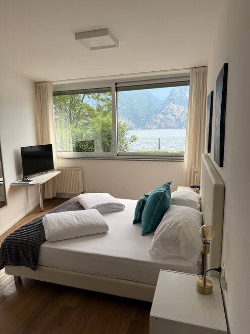 Appartamento bilocale di 40 metri quadrati al quarto piano, totalmente rinnovato e con terrazza vista lago, adatto per 2-4 persone. Camera doppia, soggiorno con 2 posti letto e cucina attrezzata con frigorifero e piastre elettriche. Bagno nuovo e spazioso con doccia e asciugacapelli.