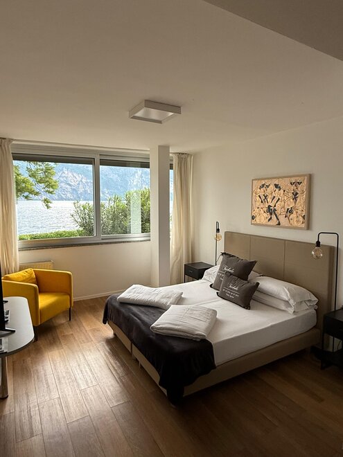 Posto a soli 20 metri dal Lago di Garda, Torbole Aparthotel si trova nella posizione perfetta per gli amanti di ogni attività all’aria aperta. La zona dell’Alto Garda è infatti una cornice unica per moltissimi sport: dal windsurf al trekking, dal climbing alla mountain-bike passando per la vela e lo stand up paddle. Al Torbole Aparthotel, grazie ad un’offerta turistica d’alto livello, ognuno di questi sportivi si sentirà come se fosse a casa. Gli appartamenti dell’hotel, provvisti di angolo cottura, sono adatti anche per le famiglie e per chi viaggia con i propri amici a 4 zampe. Al mattino è servita una ricca e salutare colazione a buffet, adatta anche per chi soffre di intolleranze alimentari. Dietro l’hotel, immerso tra ulivi secolari ed in posizione sopraelevata, si trova il giardino per gli ospiti con solarium e una meravigliosa vista lago.