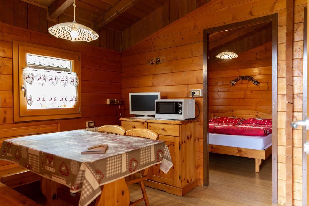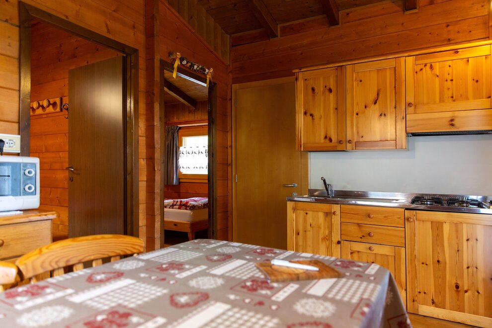 Bungalow Family bilocale: due stanze da letto, una con il letto matrimoniale, l'altra con un letto a castello e in alcuni anche un letto singolo (fino a 5 posti letto); soggiornino con angolo cucina attrezzato, bagno con doccia recentemente rinnovato e piccola veranda esterna. Dispone di coperte, piumoni, batteria da cucina, stoviglie, frigorifero, riscaldamento, tv, phon, bollitore e microonde.