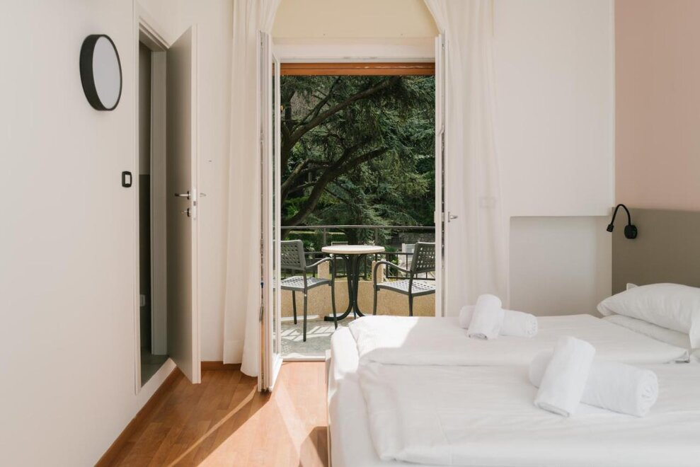 Luce naturale, atmosfere rilassanti e ogni dettaglio pensato per il vostro benessere. Ogni camera è dotata di letto matrimoniale oppure due letti singoli separabili, aria condizionata, Wi-Fi, scrivania e bagno privato con doccia completamente rinnovato. Tutte le camere dispongono di un balcone con tavolino e sedie, ideale per rilassarsi all’aria aperta, leggere, fare colazione o semplicemente godersi la vista sul parco.