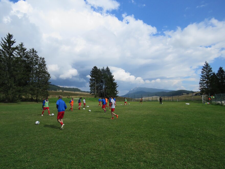 In estate: posizione perfetta per trekking in montagna. Campo da calcio e da pallavolo