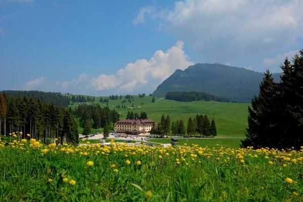 Hotel a Passo Vezzena, circondato dalla bellezza della natura sulle piste da sci.
