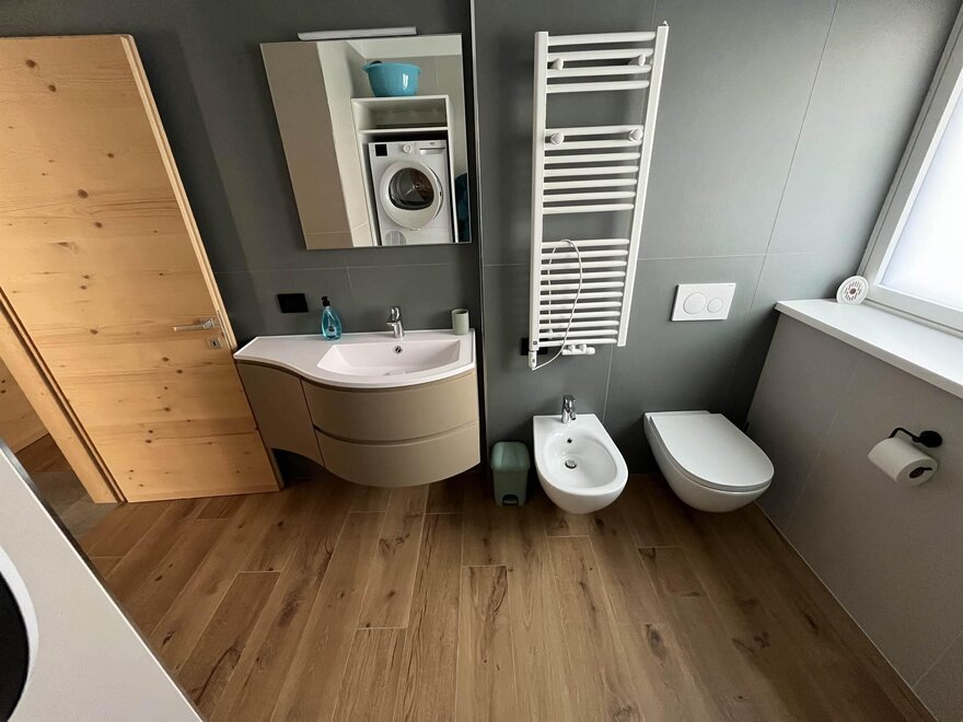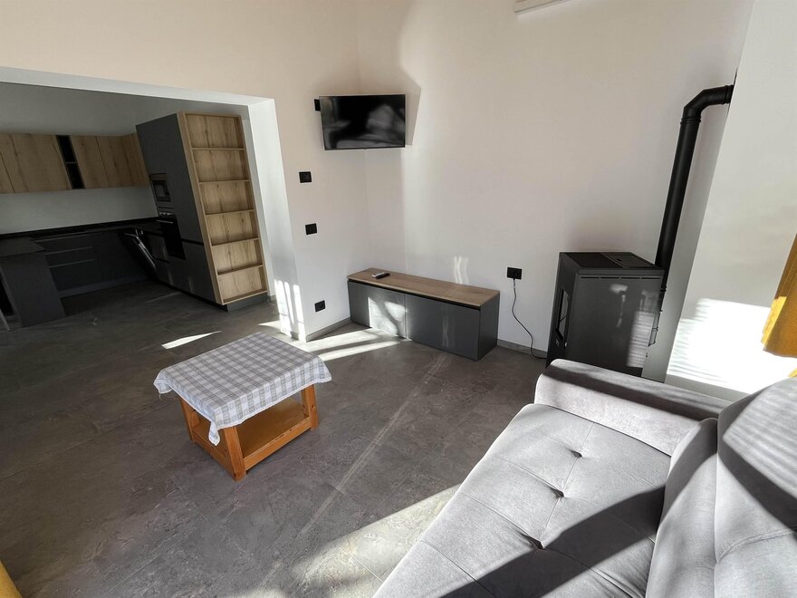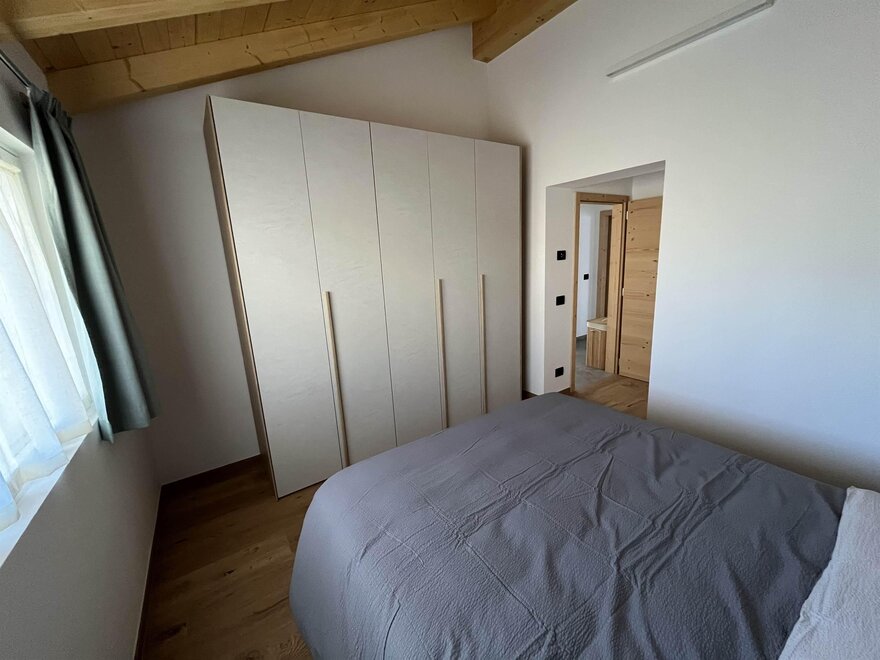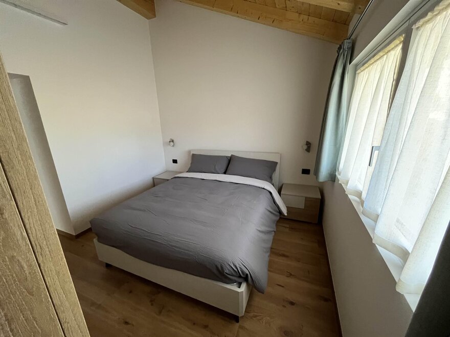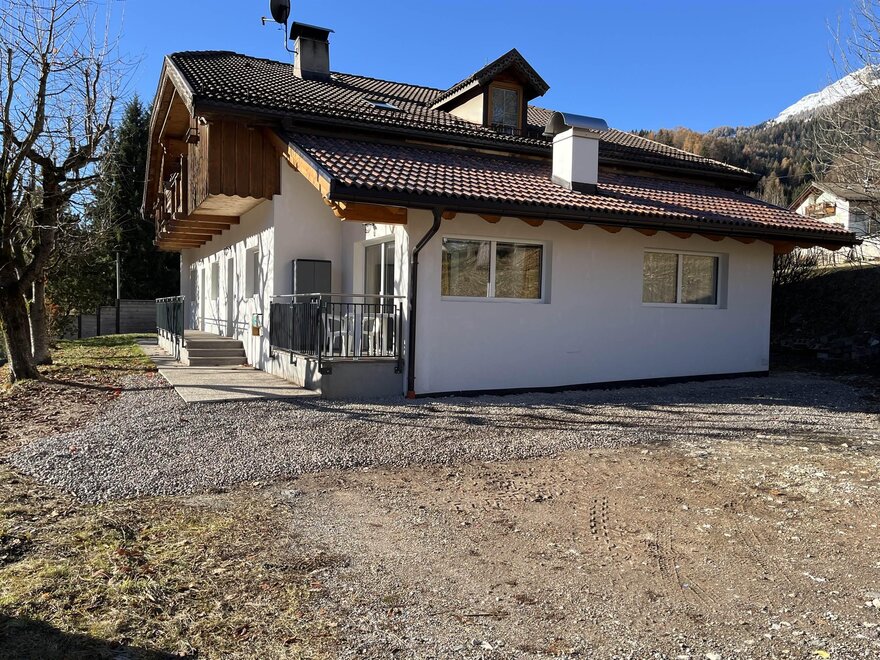 Appartamento di nuova costruzione (2025) in casa privata preesistente. Si trova a Vigo di Fassa a 10/15 minuti a piedi dal centro e vicinissimo alle fermate di bus e skibus. È situato al piano terra (tre scalini per salure sul pianerottolo dove c'è l'entrata). Presenta una cucina completamente attrezzata, un salotto con stufa a pellet (usufruibile da chi la sa utilizzare), due stanze da letto (una matrimoniale e una singola con secondo letto a scomparsa), un bagno con doccia e un balconcino privato con vista panoramica. È presente anche un giardino in comune e un parcheggio privato scoperto