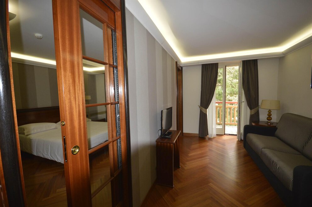Nel centro di Madonna di Campiglio, suite da 35 a 47 mq, con camera, soggiorno e spazioso bagno (alcune con balcone e zona cottura separata). Centro benessere con sauna, bagno turco, nebbie fredde e zona relax. Ascensore, soggiorno e bar. Deposito sci e scarponi.