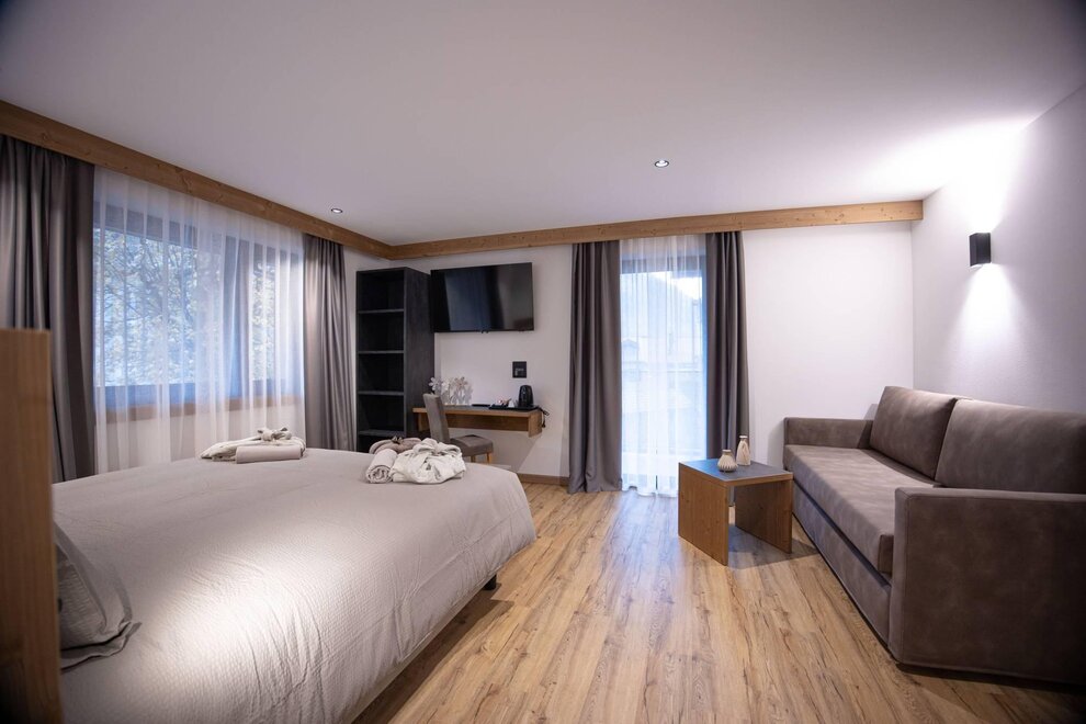 La camera dispone di zona giorno e zona notte: nella zona giorno si può trovare un divano letto, macchina del caffè e bollitore. Nella zona notte si trova il letto matrimoniale (o due letti separati).