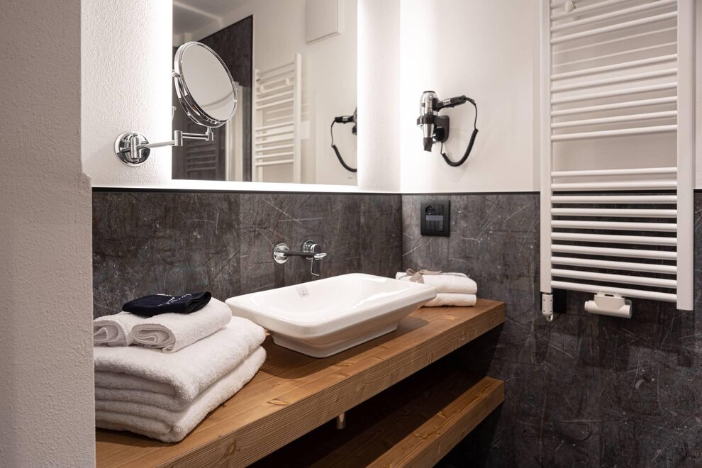 Nella parte interna sono disponibili: bagno turco, doccia emozionale, zona relax con tisane. Nella parte esterna, nel giardino dell'Hotel, si trovano una casetta relax riscaldata, due saune e un idromassaggio riscaldato a legna.