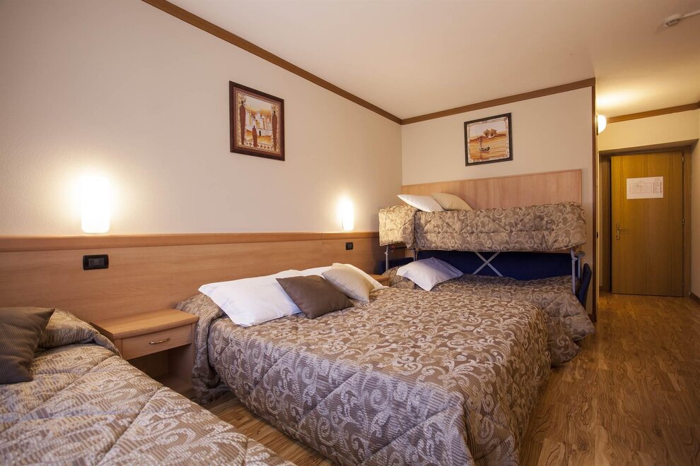 Stanza di 18 mq circa completamente arredata in stile tradizionale con legno di ciliegio. Gode di servizi principali quali phon, telefono, TV LCD digitale, cassaforte, free wi-fi. Possibilità di letto matrimoniale o 2 letti singoli + letto singolo aggiunto. Possibilità di culla. Bagno privato con doccia, bidet e lavandino (4 mq circa extra metratura stanza). Alcune sono completamente "senza barriere" con bagno dotato di doccia accessibile e maniglioni a norma CEE. Facilmente raggiungibili con ascensore. Il ristorante propone per pranzo e cena una cucina casalinga con scelta tra 4 primi, 4 secondi, buffet di verdure e vetrina dei dolci fatti in casa.