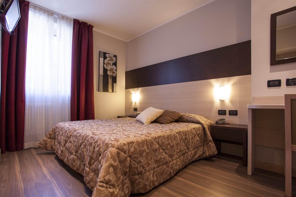 Stanza di 13-15 mq circa completamente arredata in stile tradizionale con legno di ciliegio. Situata nei primi piani dell'hotel, gode di servizi principali quali phon, telefono, TV LCD digitale, cassaforte, free wi-fi. Bagno privato con doccia, bidet e lavandino (3-4 mq circa extra metratura stanza). Alcune sono completamente "senza barriere" con bagno dotato di doccia accessibile e maniglioni a norma CEE. Facilmente raggiungibili con ascensore. Colazione locale e internazionale a buffet e bevande calde servite.